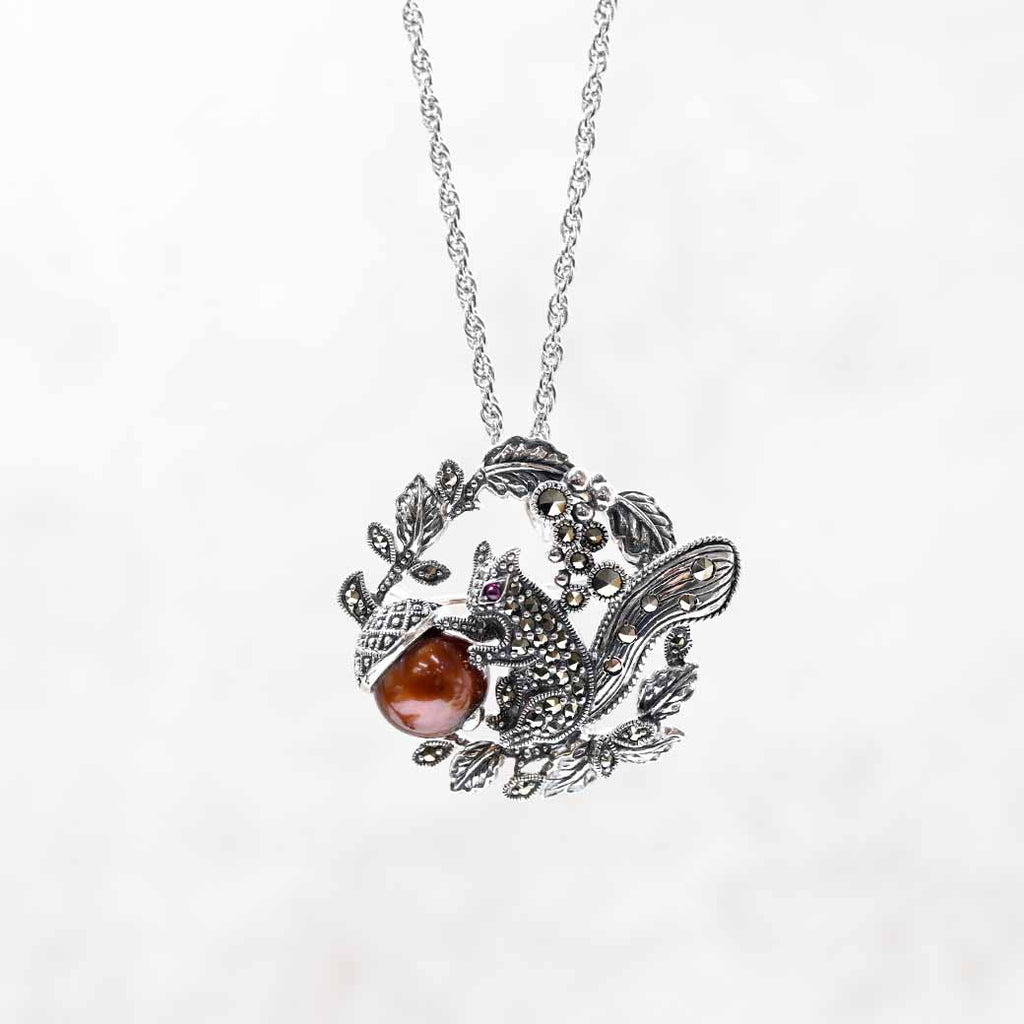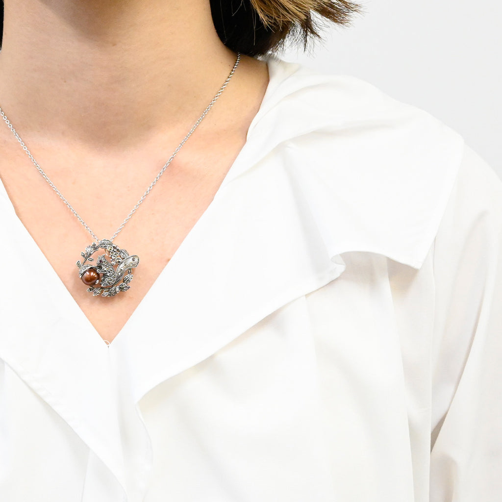 SV ルビー&淡水パール 森の宝物 ブローチペンダント
