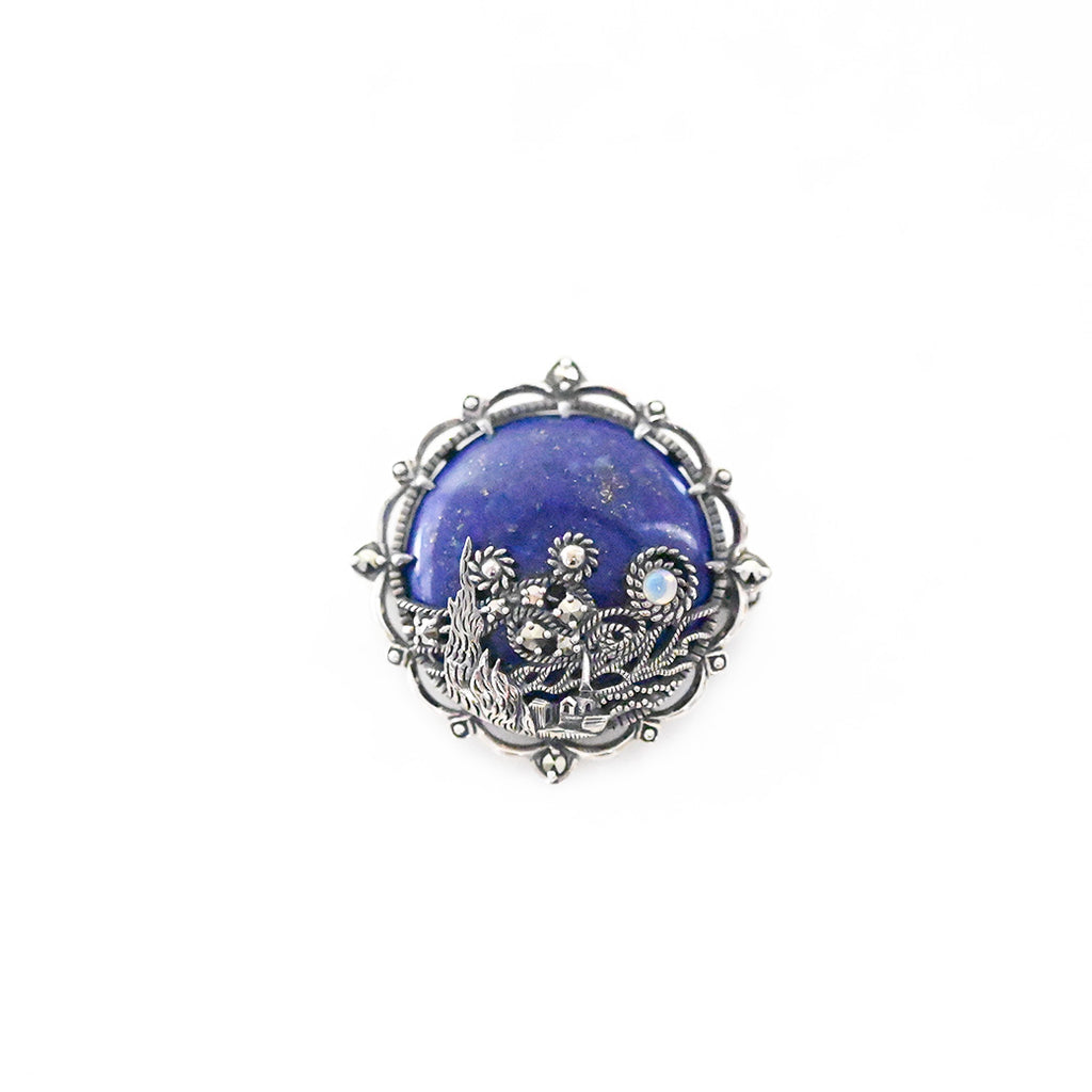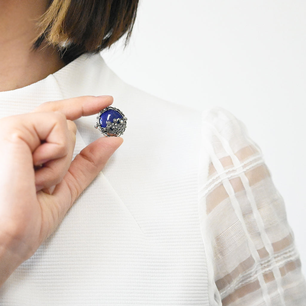 【mini series】SV ラピスラズリ &オパール ゴッホ星月夜mini ブローチペンダント