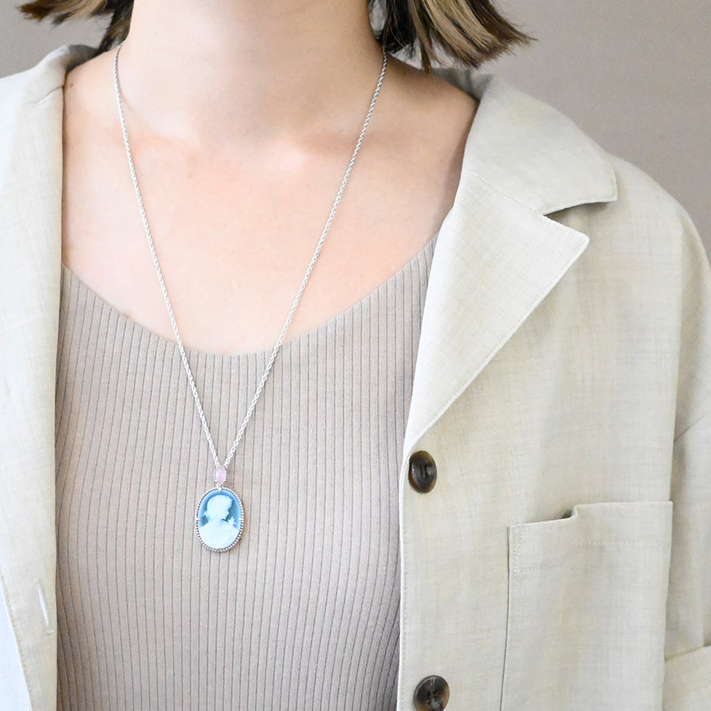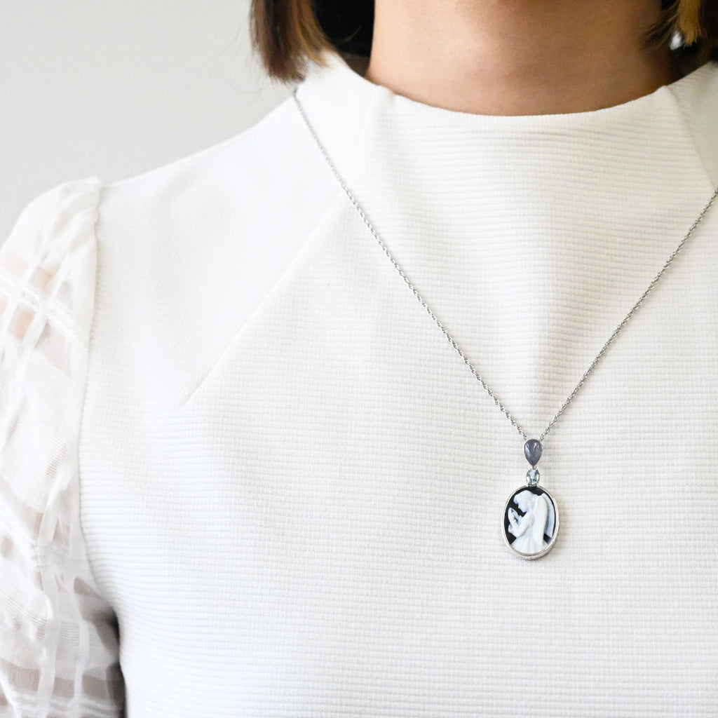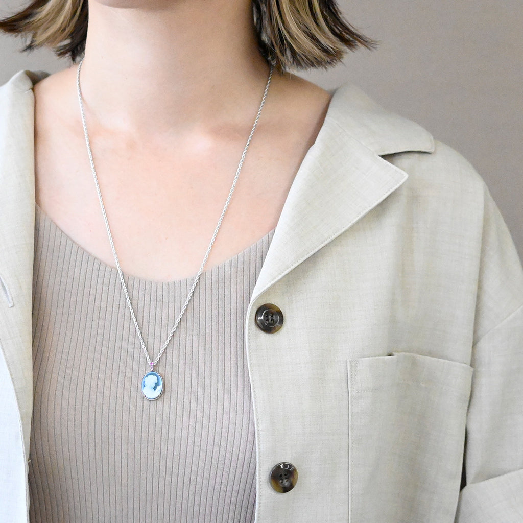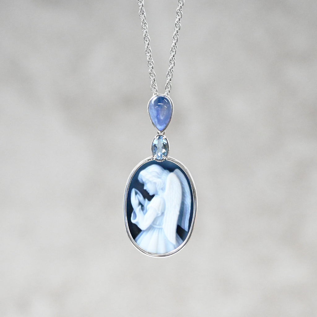 【数量限定】SV カメオ&アクアマリン 祈りを捧ぐ天使ペンダント