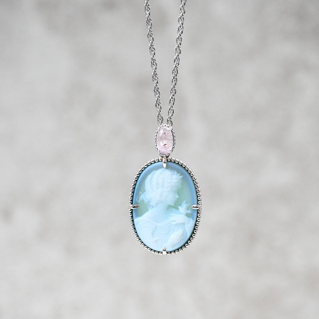 【数量限定】SV カメオ&ストロベリークォーツ ことりと語らうペンダント
