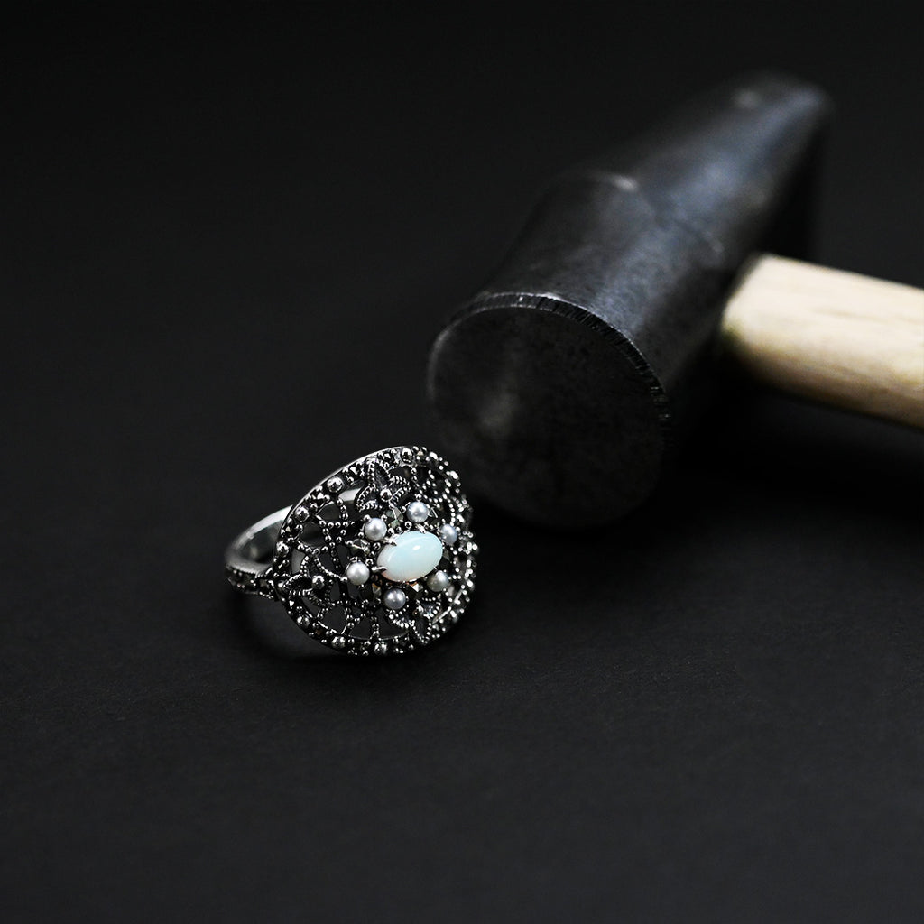 【一部再入荷】SV 琥珀&オパール アンバーグロウ リング