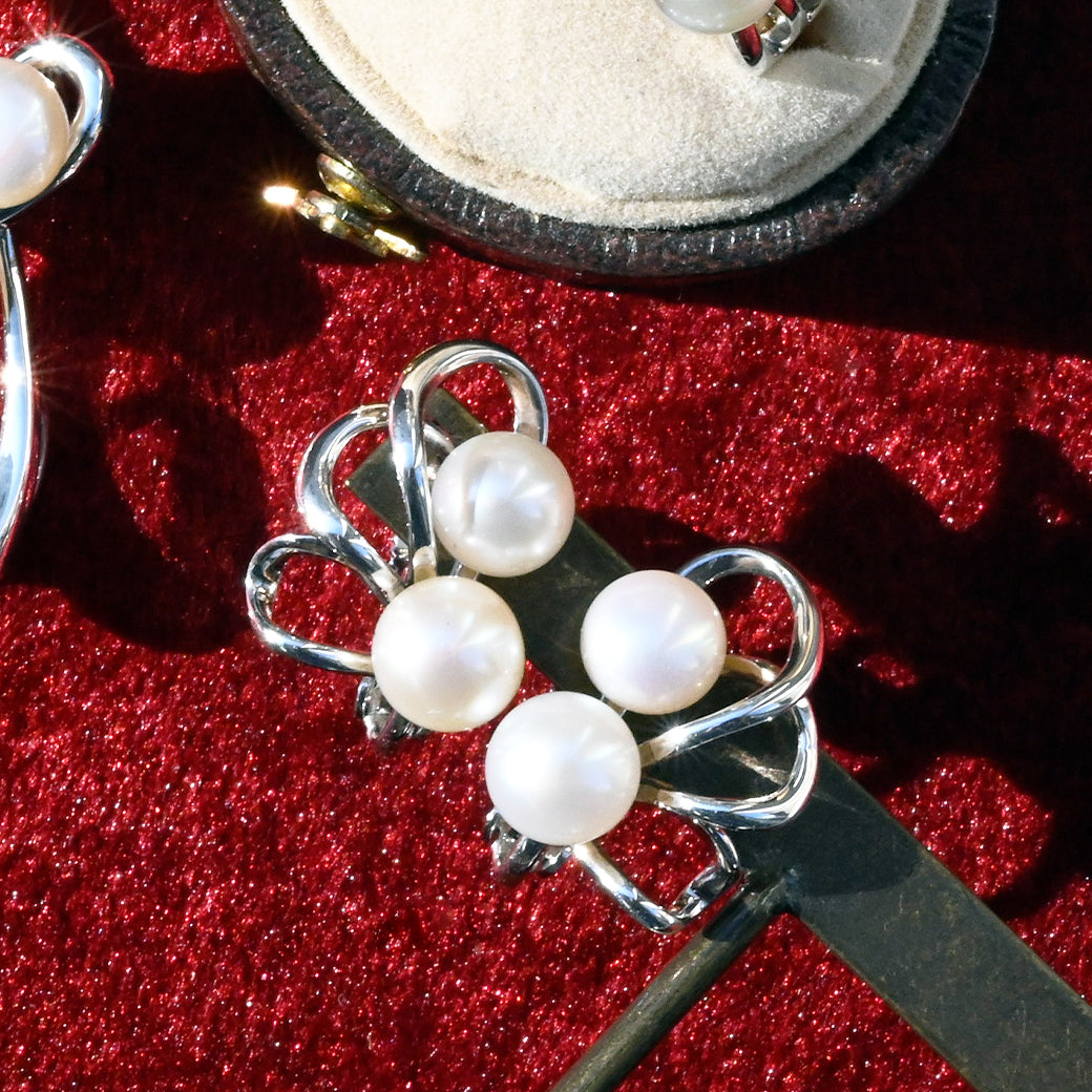 こちらは、【リング1点、ブローチペンダント1点、イヤリング1点】の合計3点のセットになります。※イヤリングのみ・リング×1点 〈素材〉シルバー925〈石〉淡水パール〈モチーフサイズ〉最大約18mm・ブローチペンダント×1点 〈素材〉シルバー925〈石〉淡水パール 〈モチーフサイズ〉最大約40mm