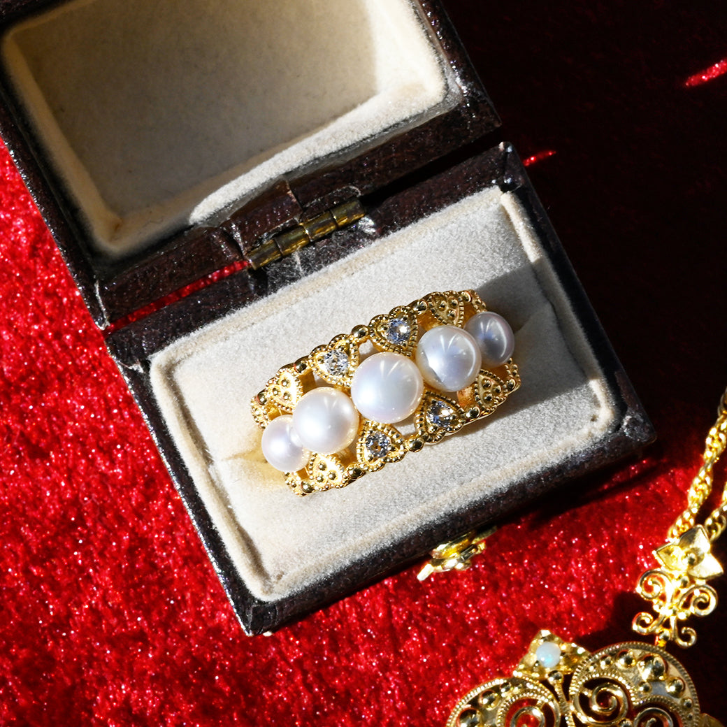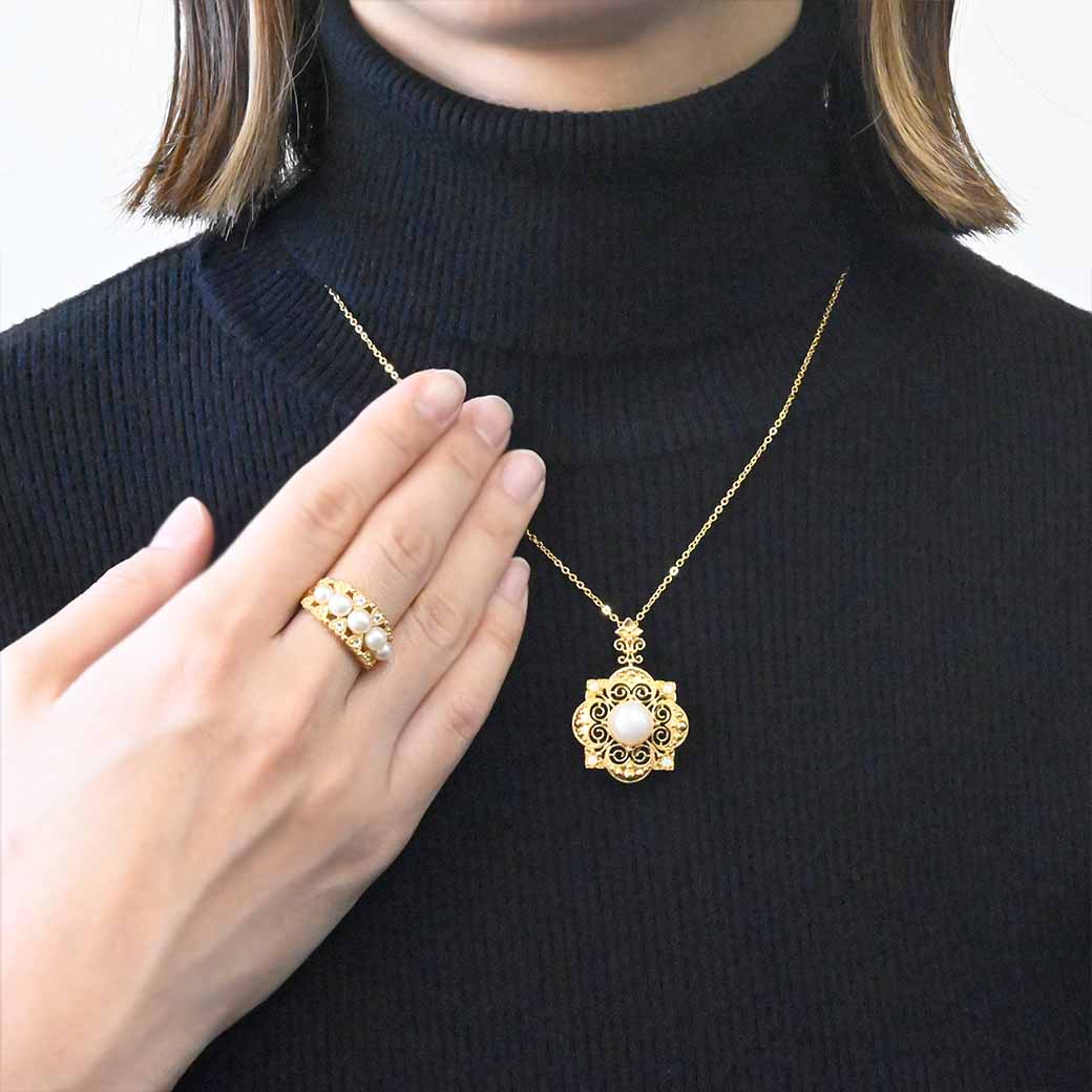 こちらは、【リング1点、ブローチペンダント1点】の合計2点のセットになります・リング×1点 〈素材〉シルバー925(ゴールドメッキ)〈石〉淡水パール、ホワイトトパーズ〈モチーフサイズ〉最大幅10mm〈サイズ直し〉不可・ブローチペンダント×1点 〈素材〉シルバー925 +ゴールドメッキ〈石〉オパール、パール〈モチーフサイズ〉最大直径:28mm