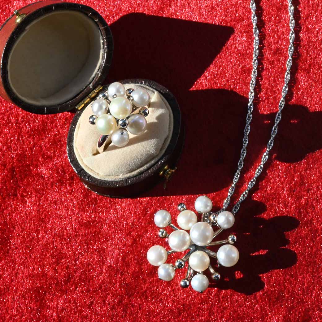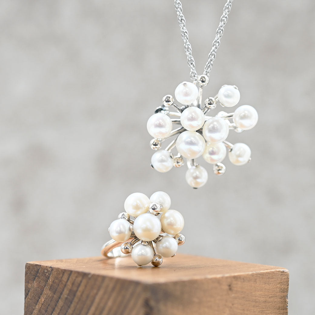 こちらは、【リング1点、ブローチペンダント1点】の合計2点のセットになります・リング×1点 〈素材〉シルバー925〈石〉淡水パール〈モチーフサイズ〉最大約19mm〈サイズ直し〉不可・ブローチペンダント×1点 〈素材〉シルバー925〈石〉淡水パール〈モチーフサイズ〉最大約28mm※風車式