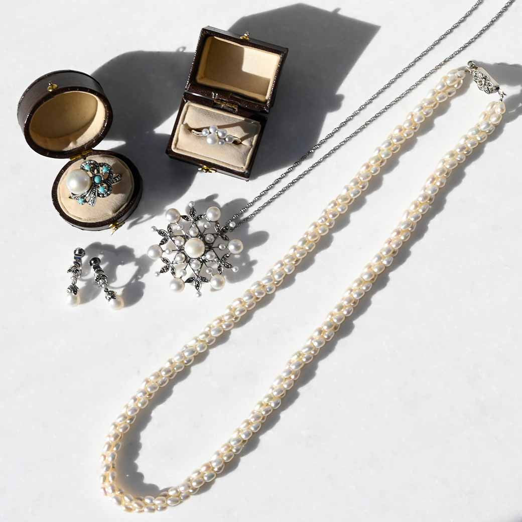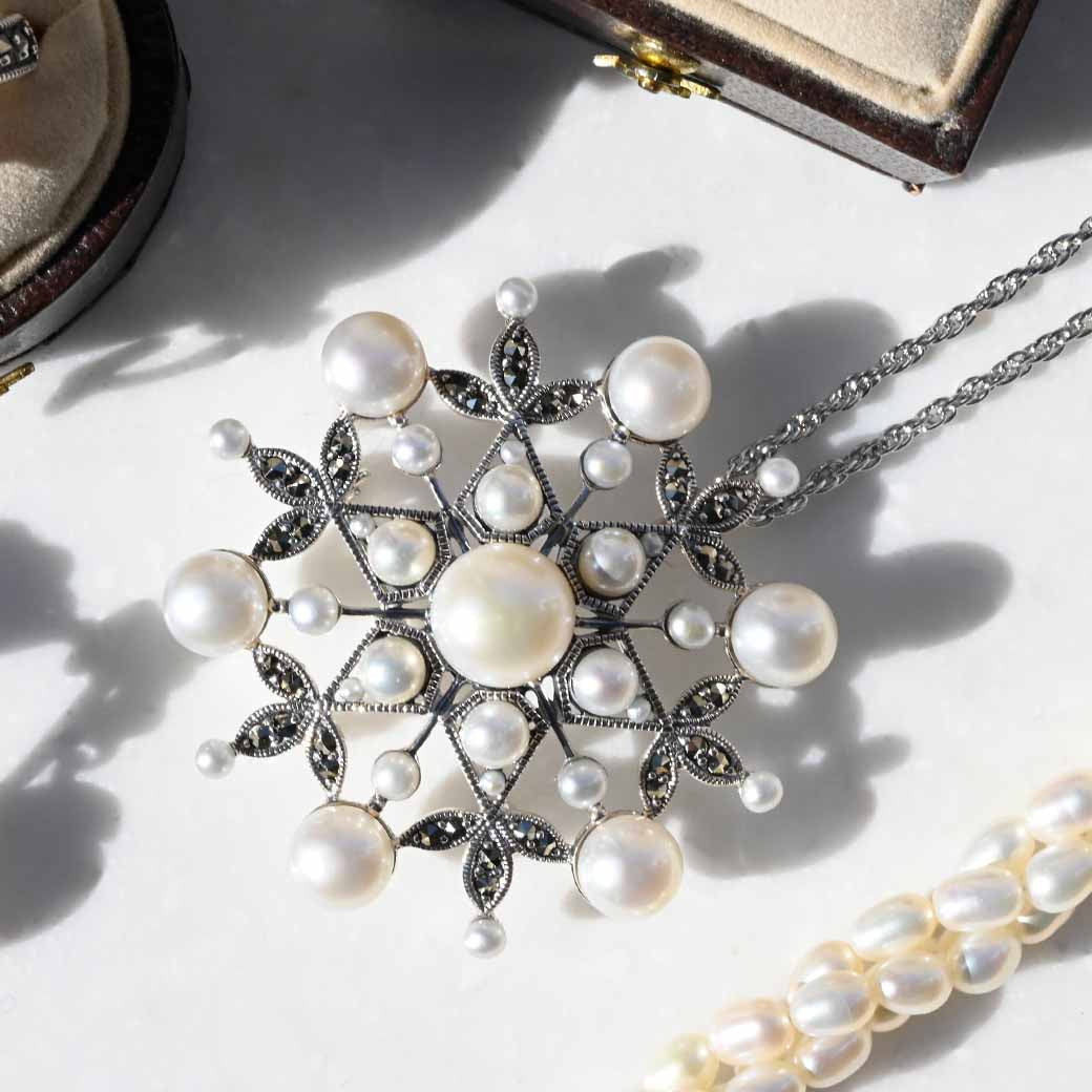 〈素材〉シルバー925〈石〉淡水パール、シードパール、マルカジット〈モチーフサイズ〉最大40mm(バチカン含む)※風車式