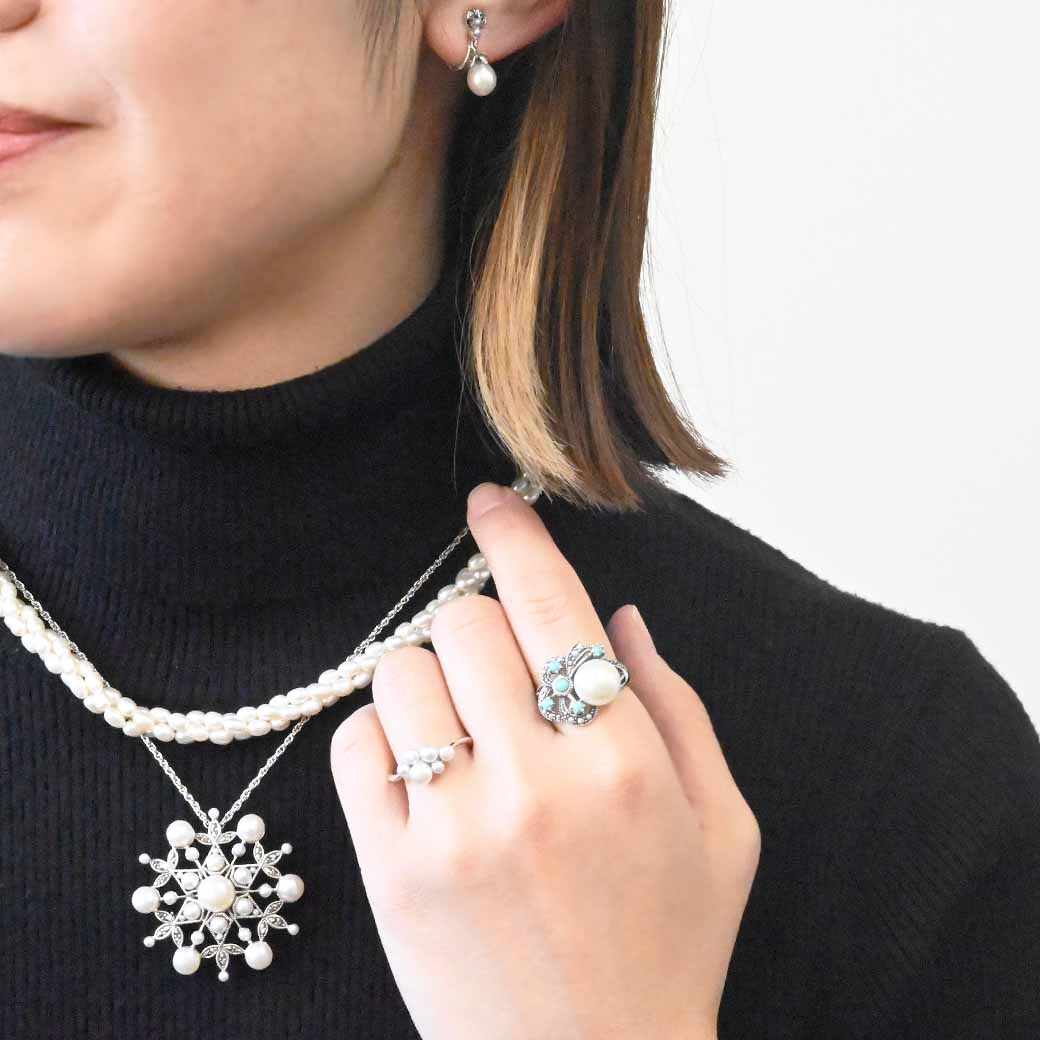 ②〈素材〉シルバー925〈石〉淡水パール、シードパール、〈モチーフサイズ〉最大9mm(15号にて計測)