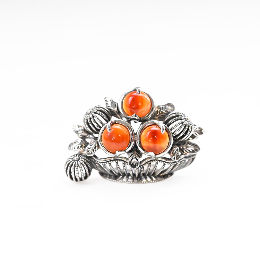 桃は「長寿」や「幸運」の象徴とされ、縁起の良いモチーフとして親しまれています。大切な方への贈り物にもぴったりで、美術と工芸が融合した特別なジュエリーとして、誕生日や記念日のプレゼントにもおすすめです。