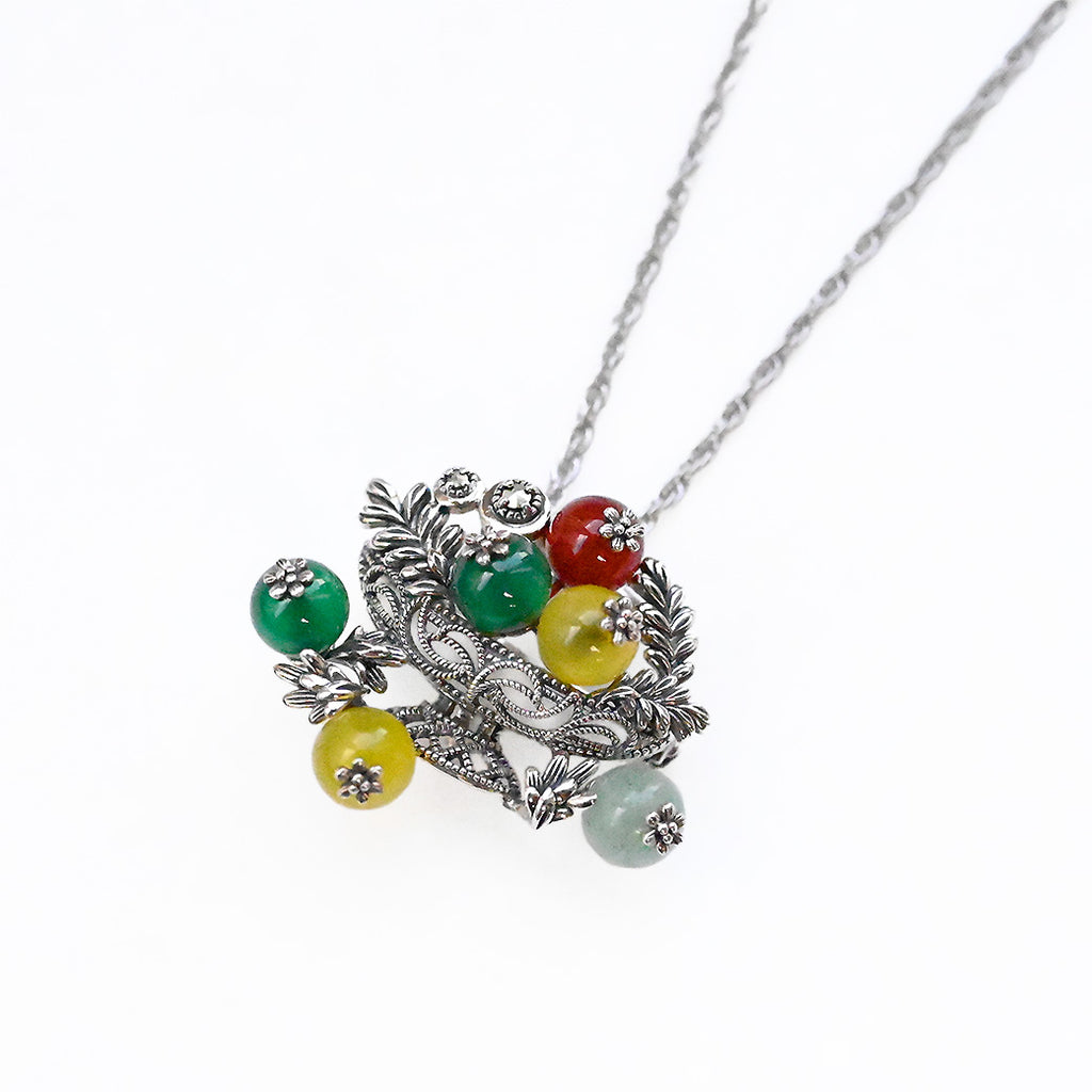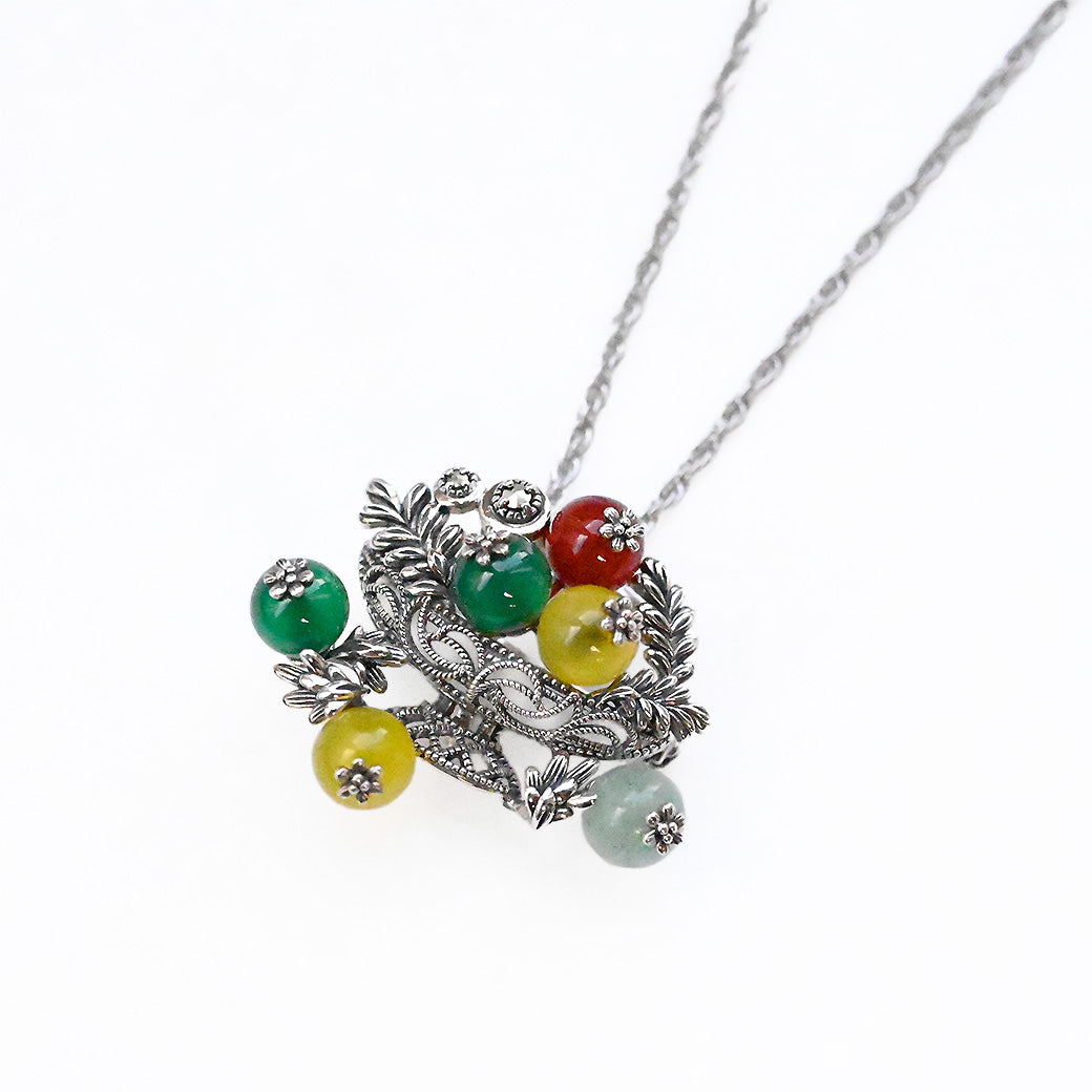 ■DETAIL〈素材〉シルバー925〈石〉カーネリアン、グリーンアゲート、イエローアゲート、グリーンクォーツ、マルカジット〈モチーフサイズ〉縦約27mm×横約32mm〈金具〉風車式※ブローチペンダント、ペンダントと表記がございますものは、真鍮サービスチェーンをお付けします。(リング、イヤリング、ピアス、K18、K10商品には付属しません。)■ご購入前にご確認ください※天然石を使用している為、色や形に多少の個体差があること、また、ブラウザによって実際の色味に若干差が出ますことをご了承ください。※撮影小物は付属いたしません。※商品の仕様変更、石変更は承っておりません。※ご注文後のお客様都合による返品・交換(サイズやイメージ違いなど)は承っておりません。不良品のみ返品を承ります。詳しくはこちら※着け心地や重さ等、その他ご不明な点はチャットにてお問い合わせくださいませ。
