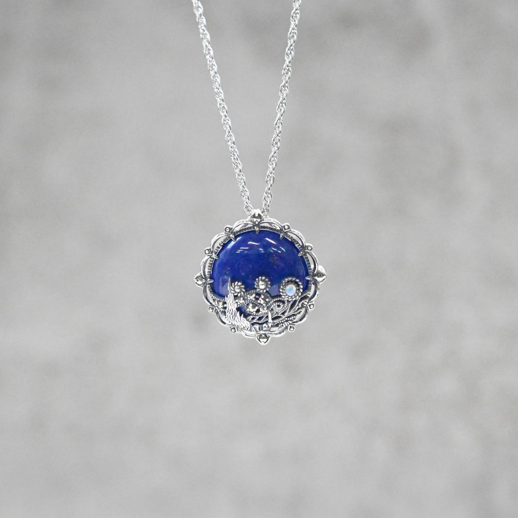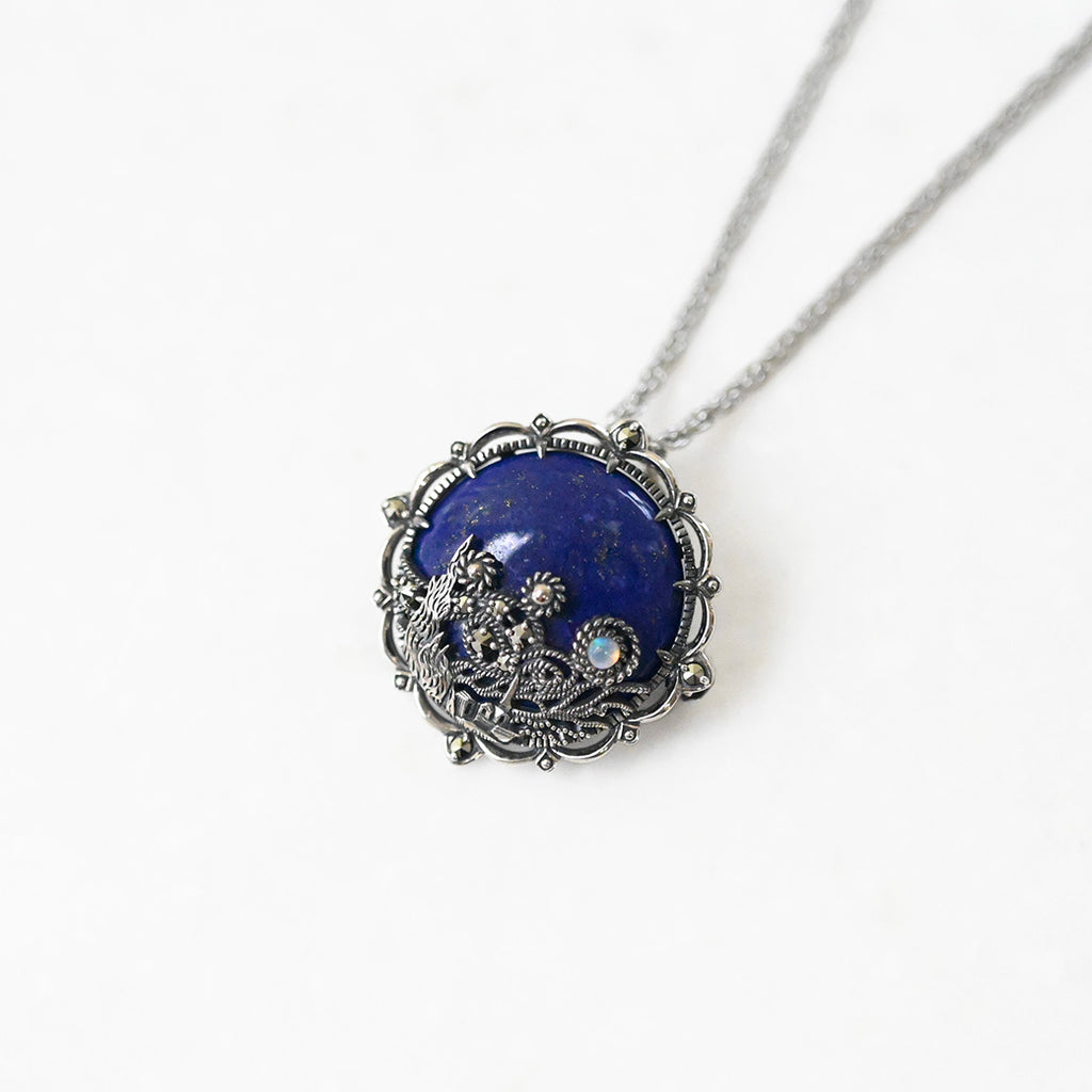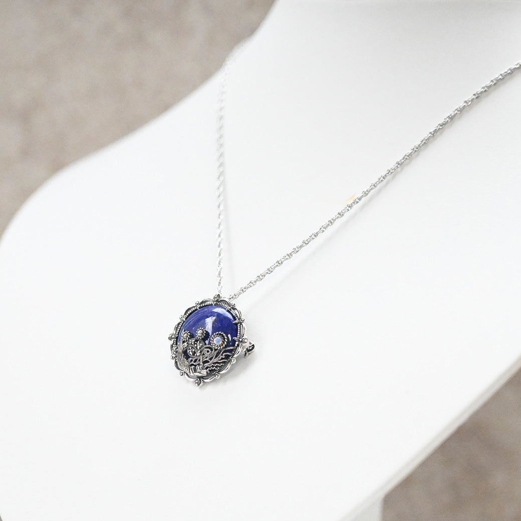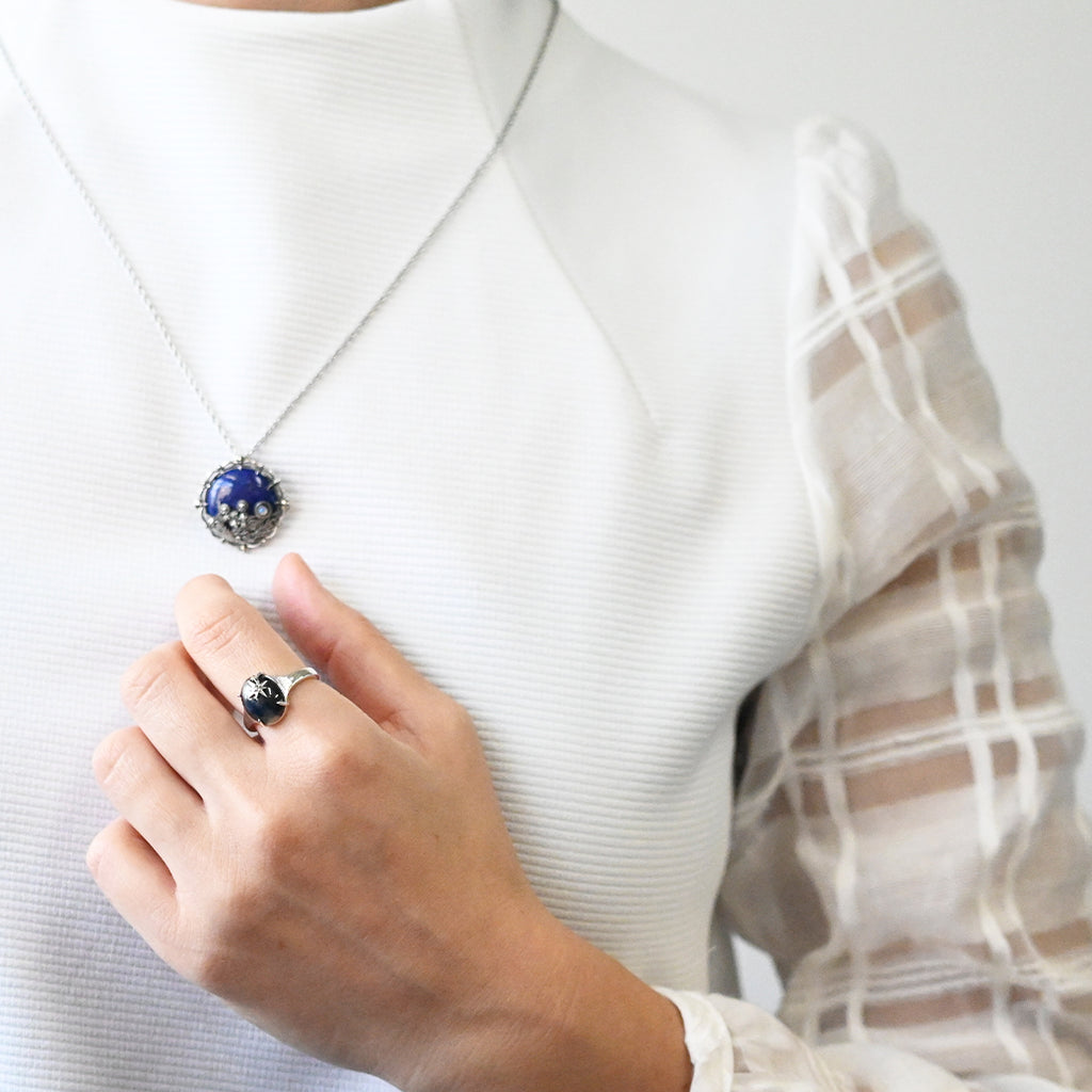 表現しました。ラピスラズリのうつくしい藍色とオパールの遊色効果とのコントラストが