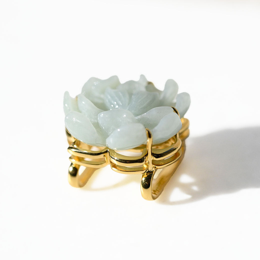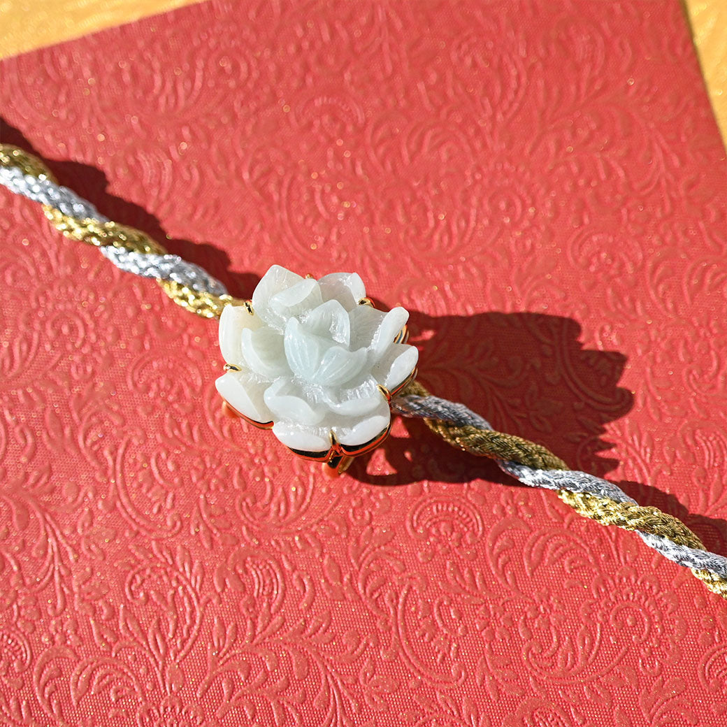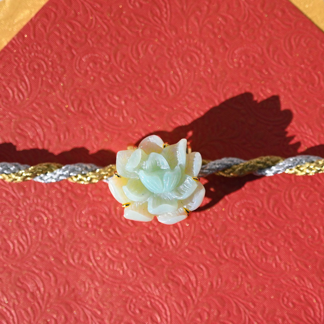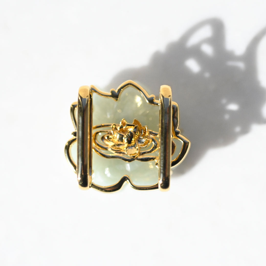 気品あふれる淡い緑色の翡翠を、繊細な蓮の花のモチーフに彫刻した帯留めです。蓮は古来より「清らかさ」や「再生」の象徴とされ、日本の和装にもよく調和する縁起の良いデザインです。高品質なSILVER 925製の金具により、しっかりとした装着感と上品な輝きを兼ね備えています。