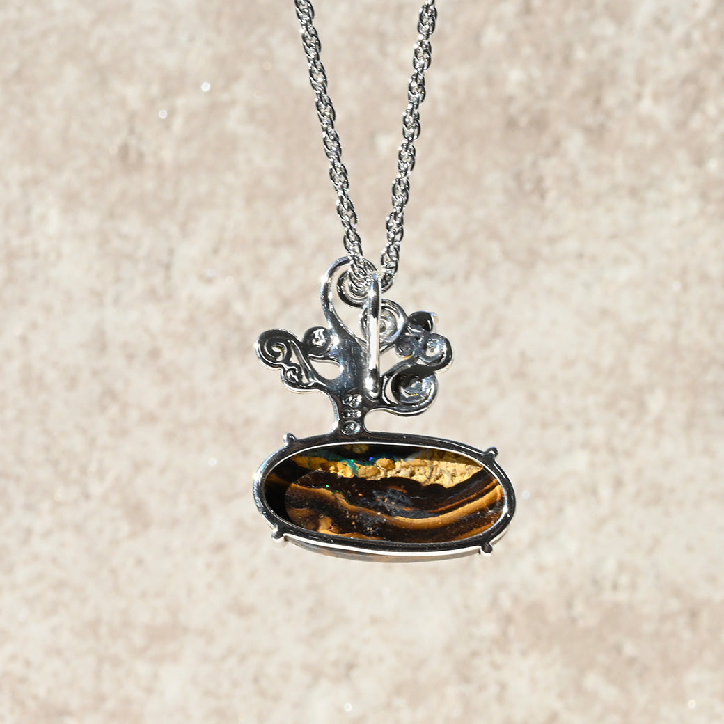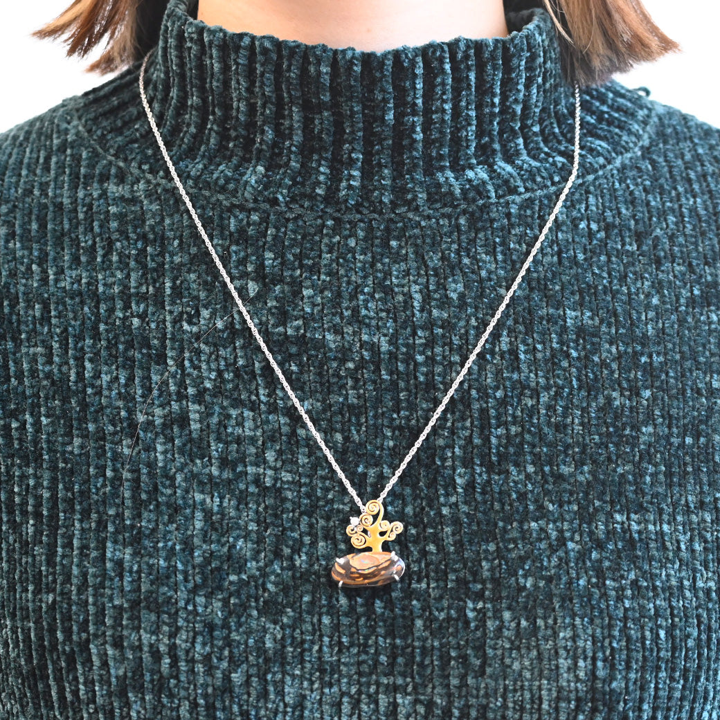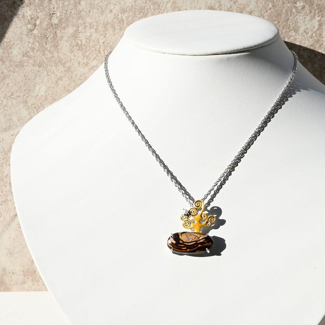 ベースはシルバー925を使用し、繊細な職人技により一点一点丁寧に仕上げています。アートと自然、そしてクラフトマンシップが融合したこのペンダントは、まさに“時を超えて語りかける小さな芸術品”。