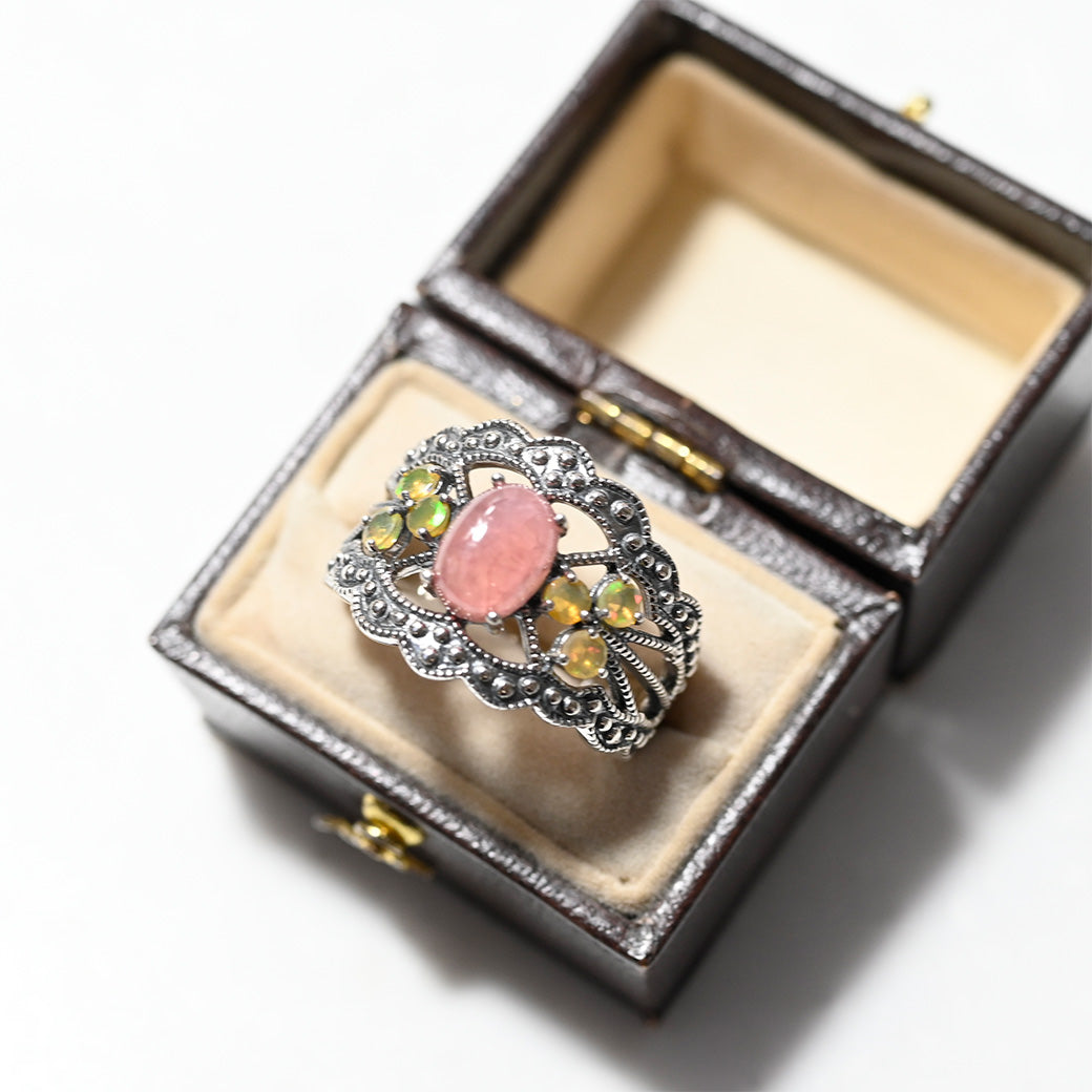 ■DETAIL〈素材〉シルバー925〈石〉インカローズ、エチオピアンオパール〈モチーフサイズ〉最大幅約16mm※ブローチペンダント、ペンダントと表記がございますものは、真鍮サービスチェーンをお付けします。(リング、イヤリング、ピアス、K18、K10商品には付属しません。)■ご購入前にご確認ください※天然石を使用している為、色や形に多少の個体差があること、また、ブラウザによって実際の色味に若干差が出ますことをご了承ください。※撮影小物は付属いたしません。※商品の仕様変更、石変更は承っておりません。※ご注文後のお客様都合による返品・交換(サイズやイメージ違いなど)は承っておりません。不良品のみ返品を承ります。詳しくはこちら※着け心地や重さ等、その他ご不明な点はチャットにてお問い合わせくださいませ。