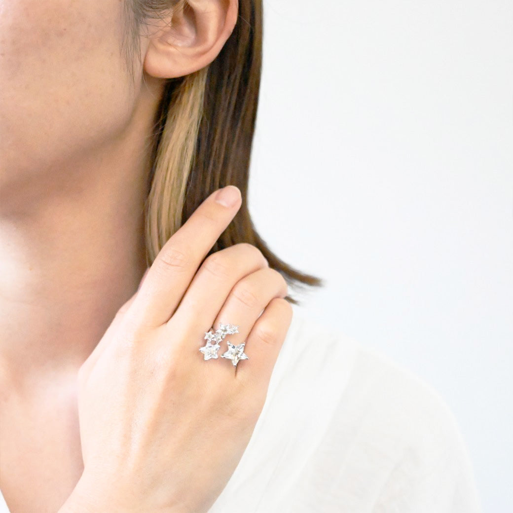 ※モチーフ部分が離れているフォークリングなので、こちらのリングは腕のデザイン上通常のリングよりもサイズが大きく感じられることがあります。