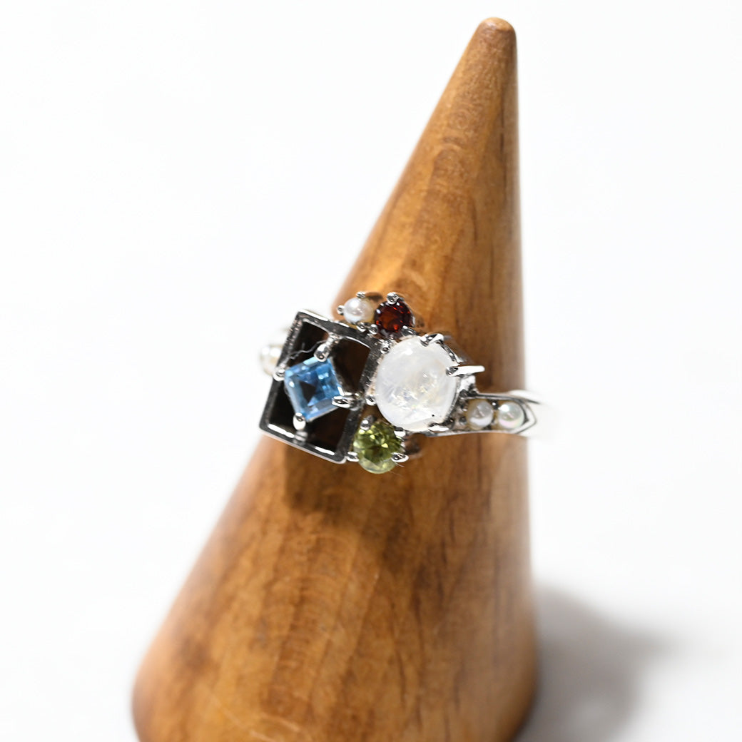 ■DETAIL〈素材〉シルバー925〈石〉ガーネット、ペリドット、シードパール、レインボームーンストーン、スイスブルートパーズ〈モチーフサイズ〉最大縦約12mm×横約13mm※ブローチペンダント、ペンダントと表記がございますものは、真鍮サービスチェーンをお付けします。(リング、イヤリング、ピアス、K18、K10商品には付属しません。)■ご購入前にご確認ください※天然石を使用している為、色や形に多少の個体差があること、また、ブラウザによって実際の色味に若干差が出ますことをご了承ください。※撮影小物は付属いたしません。※商品の仕様変更、石変更は承っておりません。※ご注文後のお客様都合による返品・交換(サイズやイメージ違いなど)は承っておりません。不良品のみ返品を承ります。詳しくはこちら※着け心地や重さ等、その他ご不明な点はチャットにてお問い合わせくださいませ。