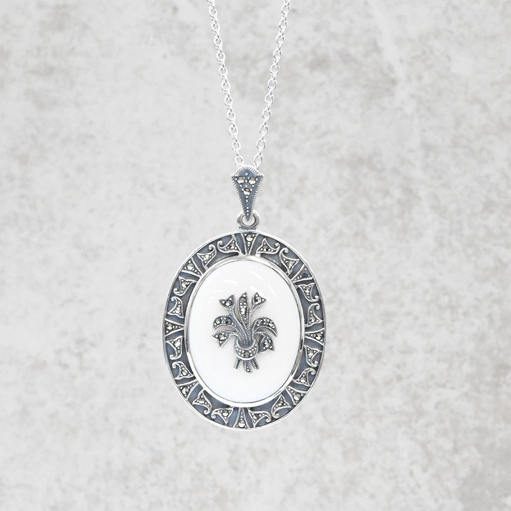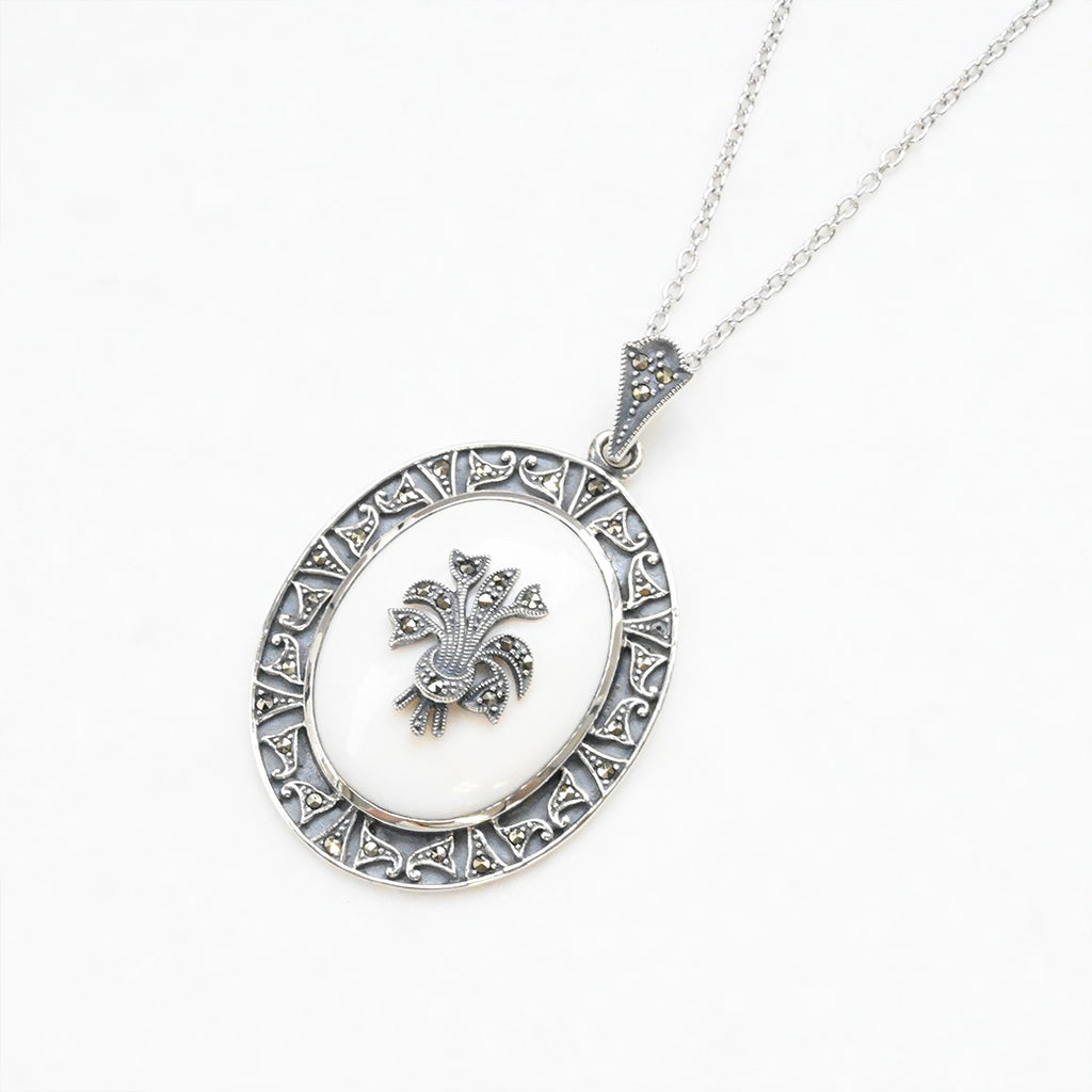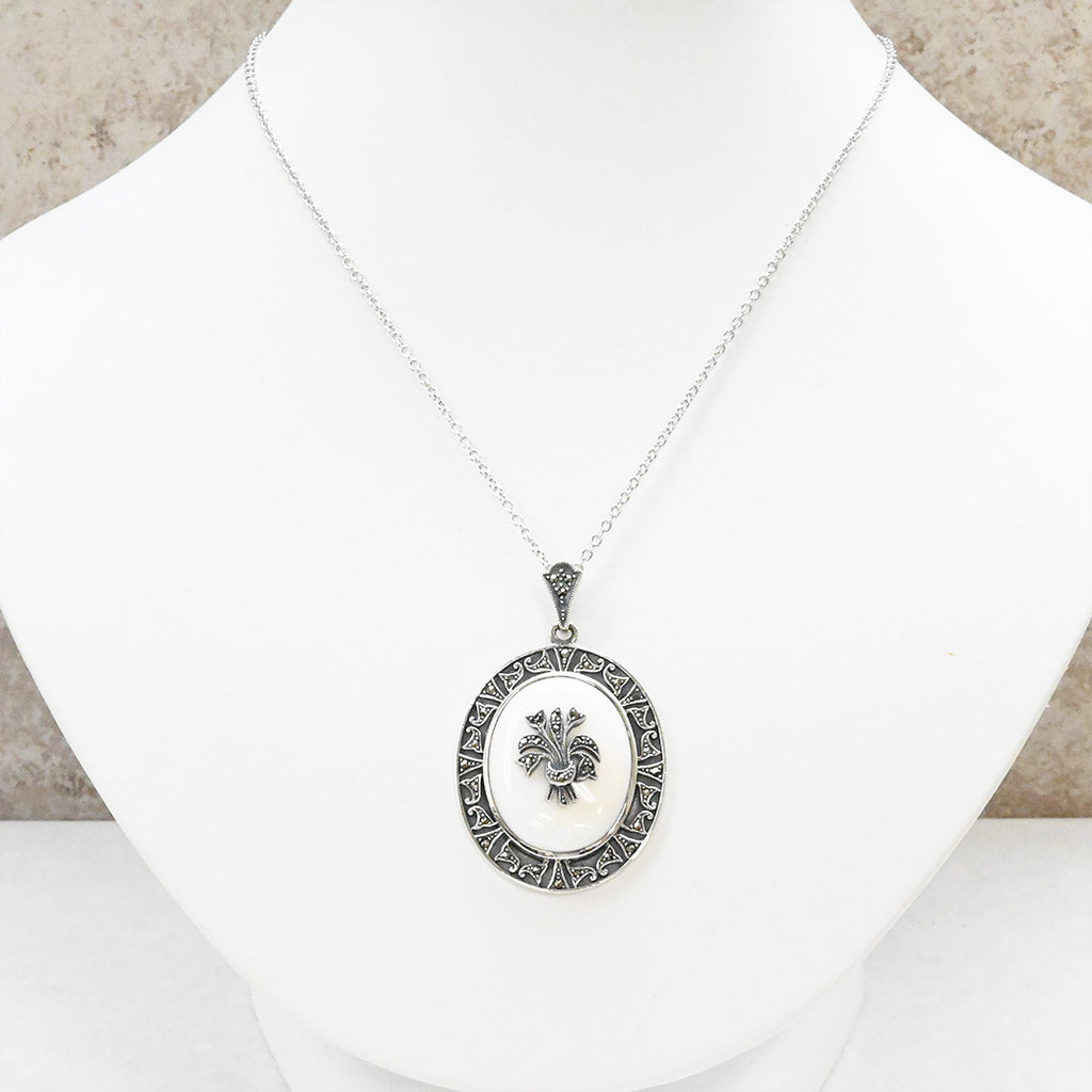 ■DETAIL〈素材〉シルバー925〈石〉白蝶貝、マルカジット〈モチーフサイズ〉最大縦約47mm×横約30mm(バチカン含む)※ブローチペンダント、ペンダントと表記がございますものは、真鍮サービスチェーンをお付けします。(リング、イヤリング、ピアス、K18、K10商品には付属しません。)■ご購入前にご確認ください※天然石を使用している為、色や形に多少の個体差があること、また、ブラウザによって実際の色味に若干差が出ますことをご了承ください。※撮影小物は付属いたしません。※商品の仕様変更、石変更は承っておりません。※ご注文後のお客様都合による返品・交換(サイズやイメージ違いなど)は承っておりません。不良品のみ返品を承ります。詳しくはこちら※着け心地や重さ等、その他ご不明な点はチャットにてお問い合わせくださいませ。