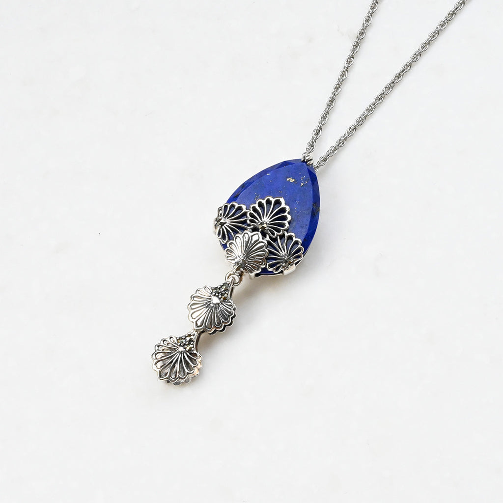 ■DETAIL〈素材〉シルバー925〈石〉ラピスラズリ、マルカジット 〈モチーフサイズ〉最大縦約53mm×横約19mm※ブローチペンダント、ペンダントと表記がございますものは、真鍮サービスチェーンをお付けします。(リング、イヤリング、ピアス、K18、K10商品には付属しません。)■ご購入前にご確認ください※天然石を使用している為、色や形に多少の個体差があること、また、ブラウザによって実際の色味に若干差が出ますことをご了承ください。※撮影小物は付属いたしません。※商品の仕様変更、石変更は承っておりません。※ご注文後のお客様都合による返品・交換(サイズやイメージ違いなど)は承っておりません。不良品のみ返品を承ります。詳しくはこちら※着け心地や重さ等、その他ご不明な点はチャットにてお問い合わせくださいませ。
