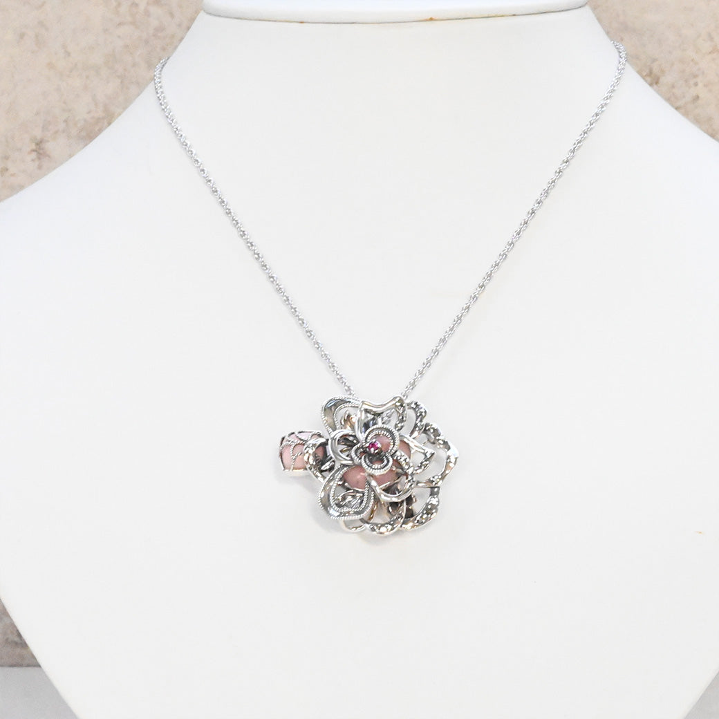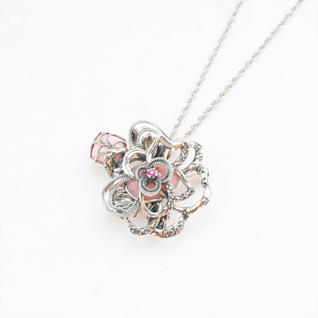 ■DETAIL〈素材〉シルバー925〈石〉ピンクオパール、ルビー、マルカジット〈モチーフサイズ〉縦約28mm×横約35㎜■ご購入前にご確認ください※天然石を使用している為、色や形に多少の個体差があること、また、ブラウザによって実際の色味に若干差が出ますことをご了承ください。※撮影小物は付属いたしません。※商品の仕様変更、石変更は承っておりません。※ご注文後のお客様都合による返品・交換(サイズやイメージ違いなど)は承っておりません。不良品のみ返品を承ります。詳しくはこちら※着け心地や重さ等、その他ご不明な点はチャットにてお問い合わせくださいませ。