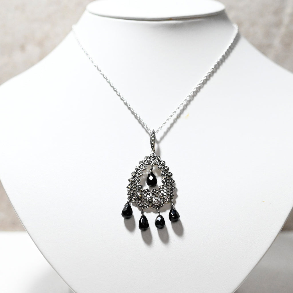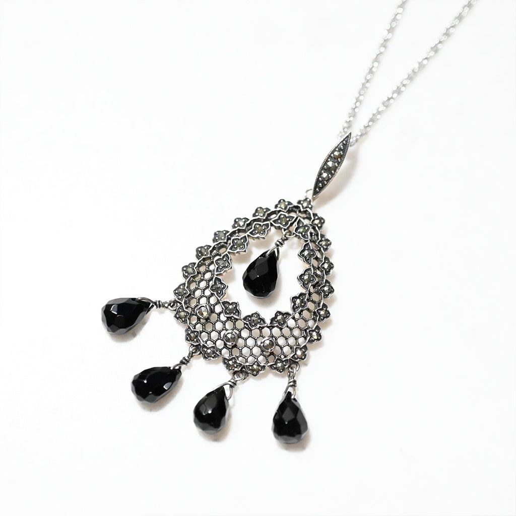 ■DETAIL〈素材〉シルバー925〈石〉オニキス、マルカジット〈モチーフサイズ〉最大縦約70mm×横約40mm■ご購入前にご確認ください※天然石を使用している為、色や形に多少の個体差があること、また、ブラウザによって実際の色味に若干差が出ますことをご了承ください。※撮影小物は付属いたしません。※商品の仕様変更、石変更は承っておりません。※ご注文後のお客様都合による返品・交換(サイズやイメージ違いなど)は承っておりません。不良品のみ返品を承ります。詳しくはこちら※着け心地や重さ等、その他ご不明な点はチャットにてお問い合わせくださいませ。
