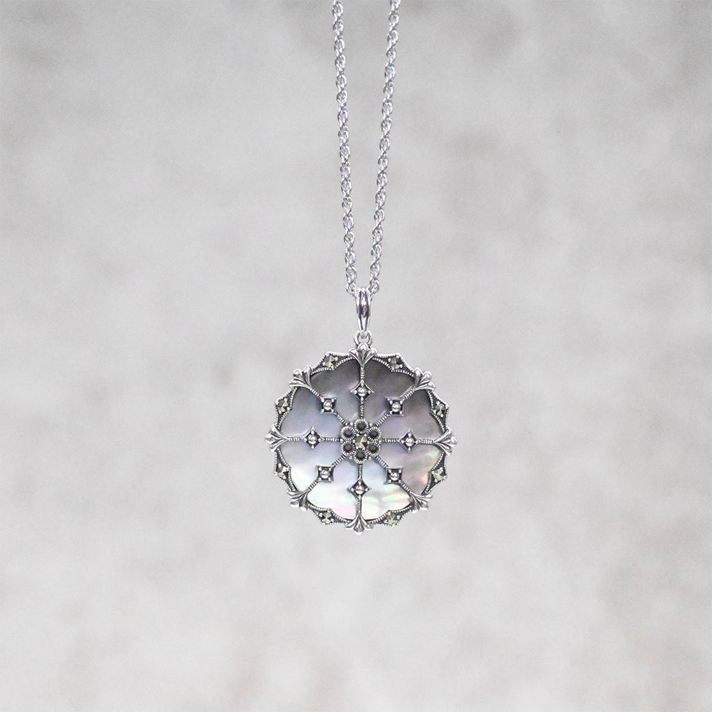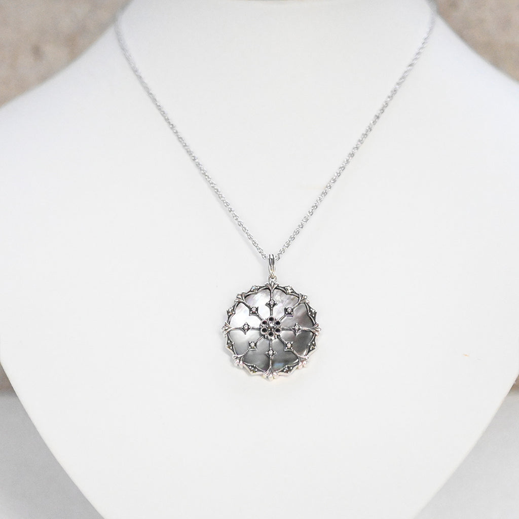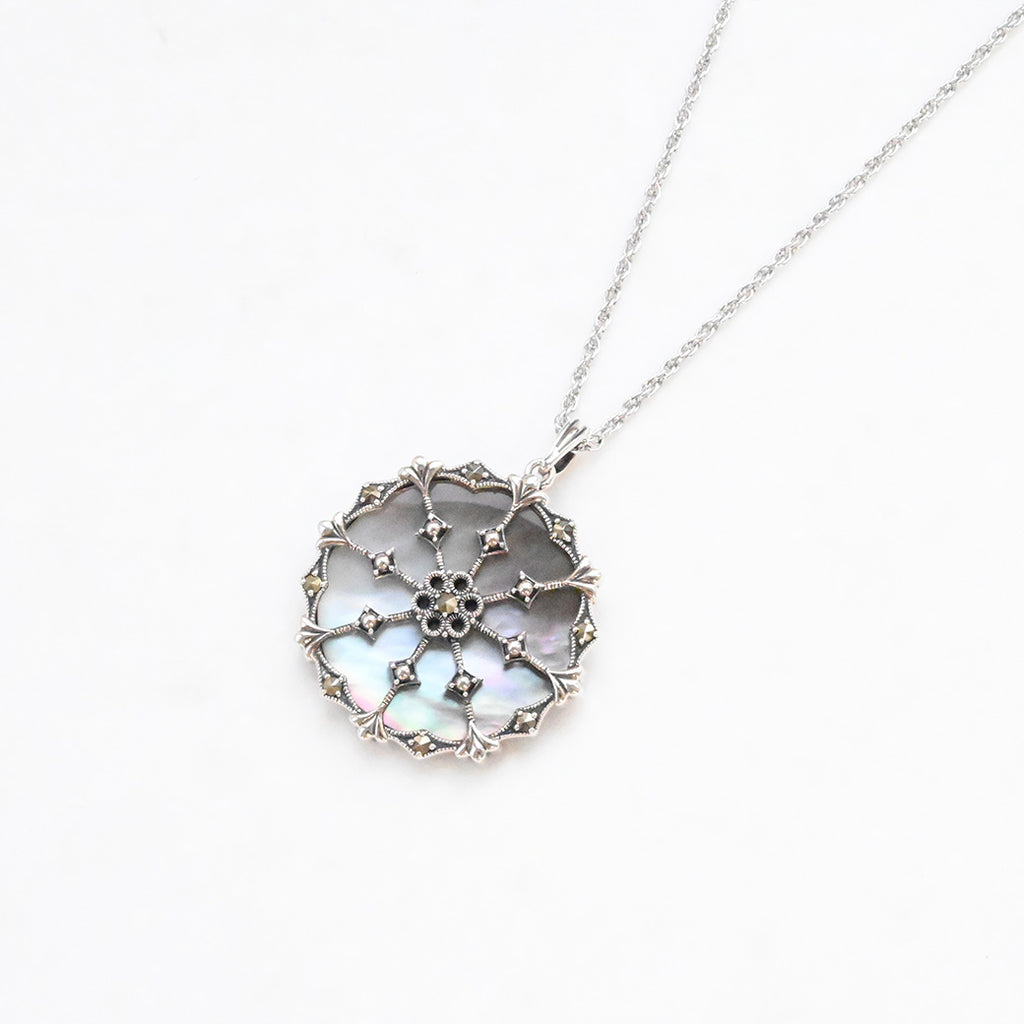 ■DETAIL〈素材〉シルバー925〈石〉黒蝶貝、マルカジット〈モチーフサイズ〉最大縦約37mm×横約28mm(バチカン含む)※ブローチペンダント、ペンダントと表記がございますものは、真鍮サービスチェーンをお付けします。(リング、イヤリング、ピアス、K18、K10商品には付属しません。)■ご購入前にご確認ください※天然石を使用している為、色や形に多少の個体差があること、また、ブラウザによって実際の色味に若干差が出ますことをご了承ください。※撮影小物は付属いたしません。※商品の仕様変更、石変更は承っておりません。※ご注文後のお客様都合による返品・交換(サイズやイメージ違いなど)は承っておりません。不良品のみ返品を承ります。詳しくはこちら※着け心地や重さ等、その他ご不明な点はチャットにてお問い合わせくださいませ。