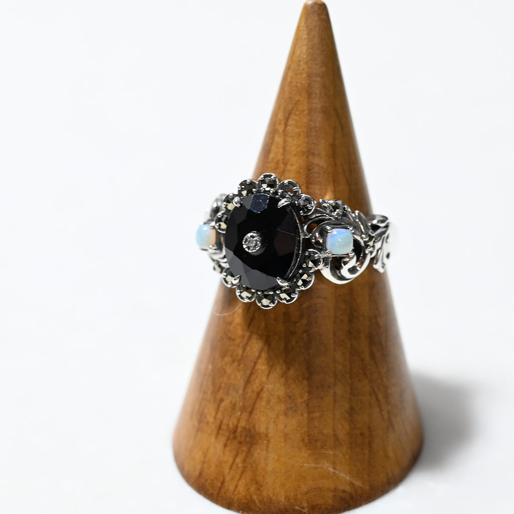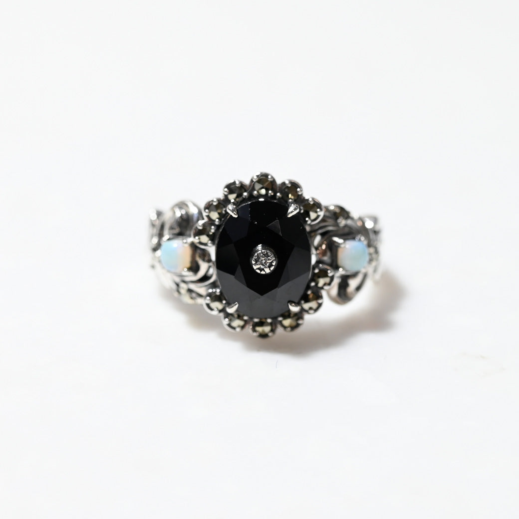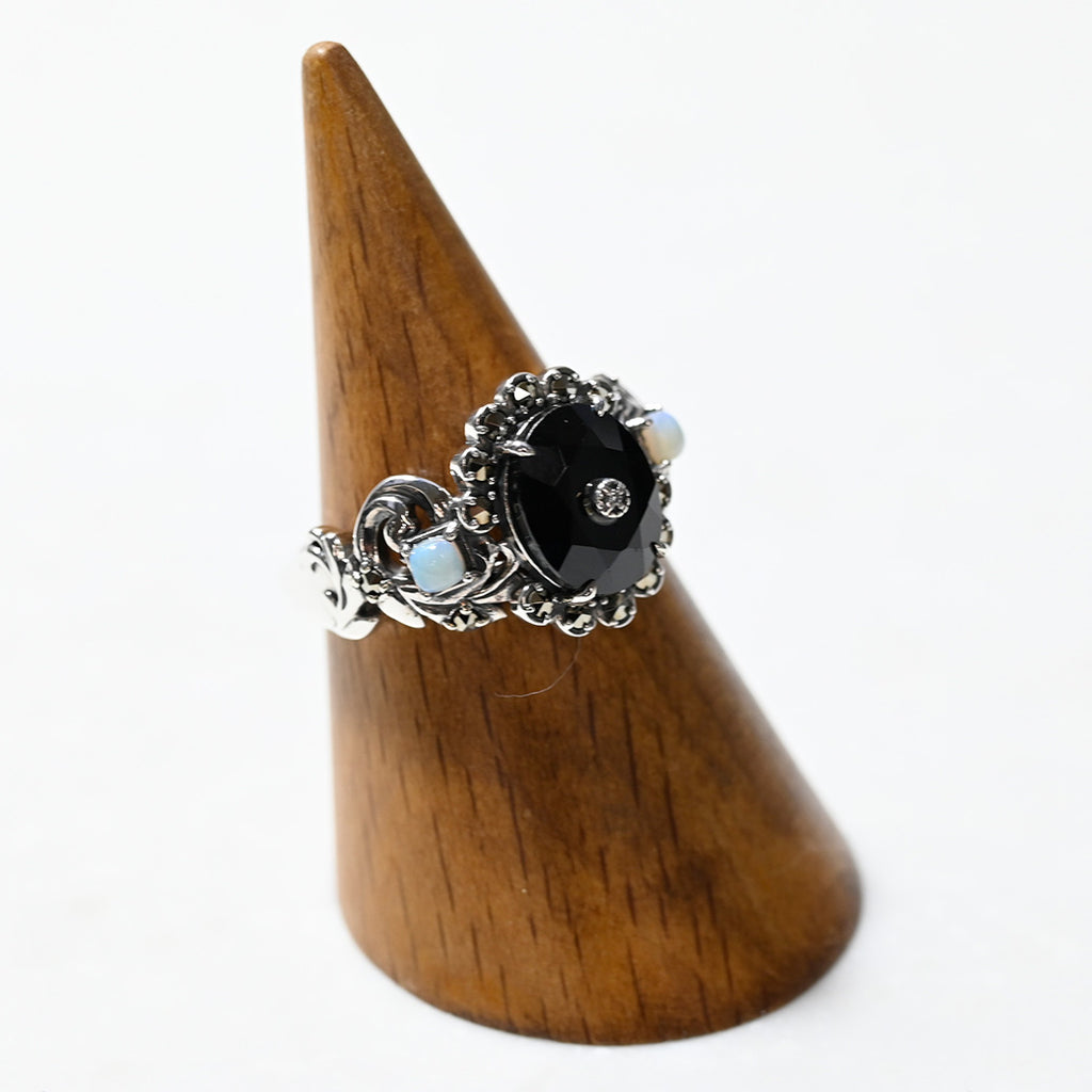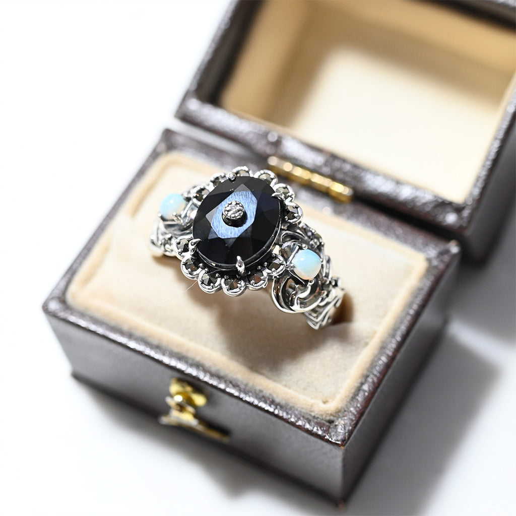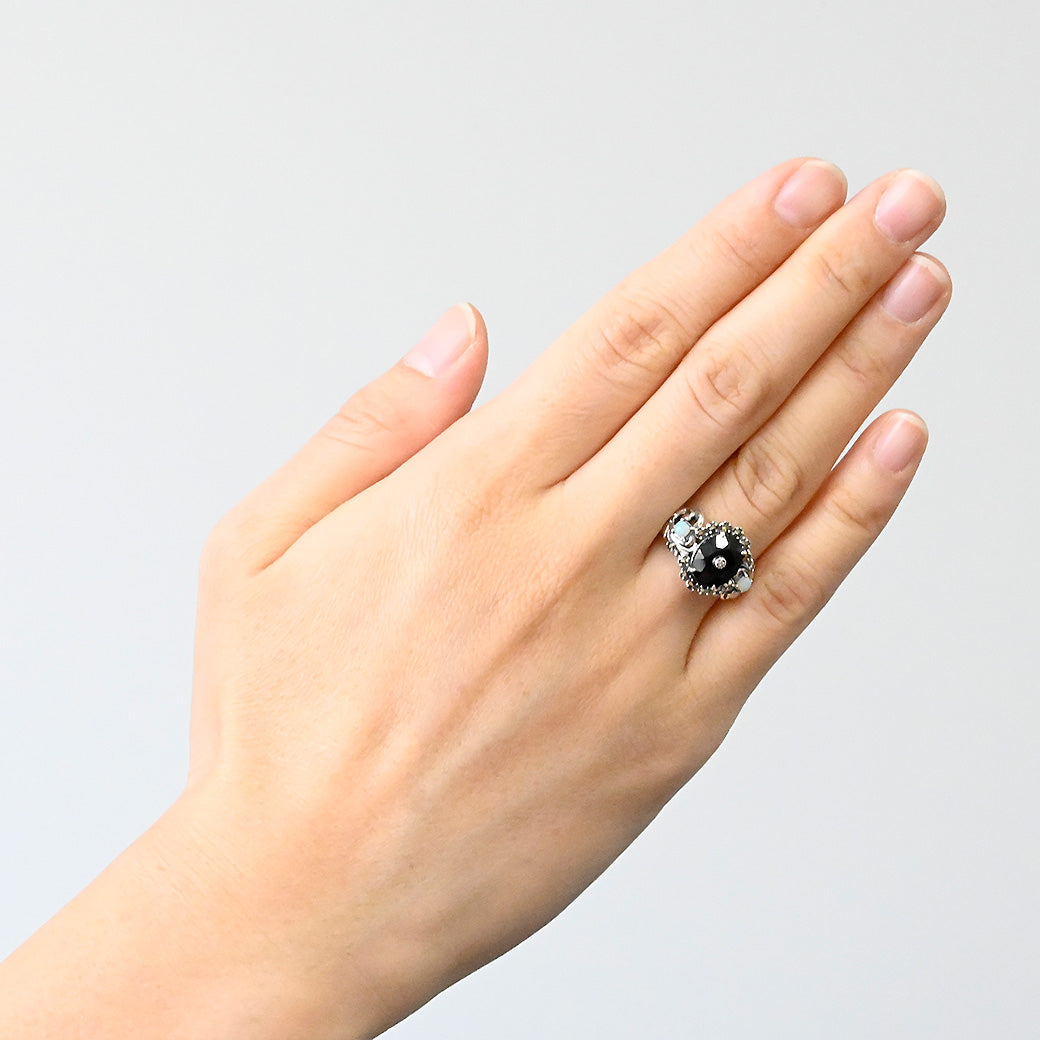 ■DETAIL〈素材〉シルバー925〈石〉ブラックスピネル、ダイヤモンド、マルカジット、オパール〈モチーフサイズ〉最大幅約15mm※ブローチペンダント、ペンダントと表記がございますものは、真鍮サービスチェーンをお付けします。(リング、イヤリング、ピアス、K18、K10商品には付属しません。)■ご購入前にご確認ください※天然石を使用している為、色や形に多少の個体差があること、また、ブラウザによって実際の色味に若干差が出ますことをご了承ください。※撮影小物は付属いたしません。※商品の仕様変更、石変更は承っておりません。※ご注文後のお客様都合による返品・交換(サイズやイメージ違いなど)は承っておりません。不良品のみ返品を承ります。詳しくはこちら※着け心地や重さ等、その他ご不明な点はチャットにてお問い合わせくださいませ。