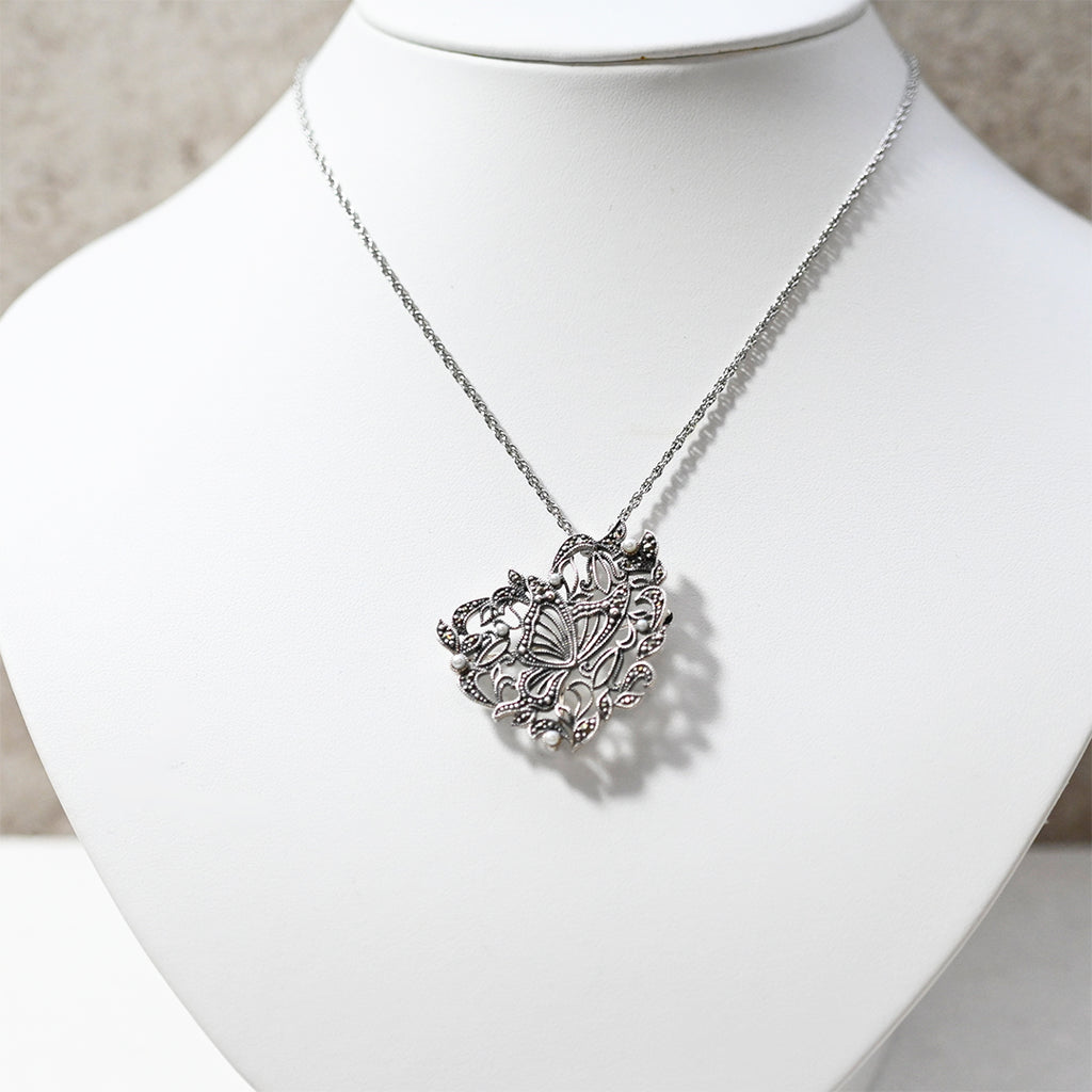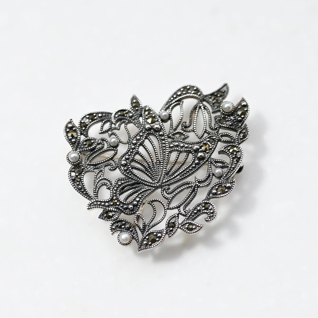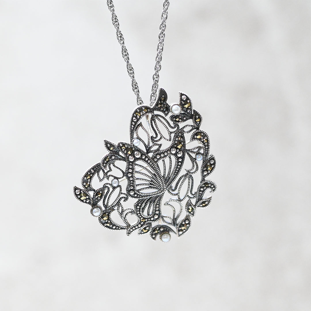 ■DETAIL〈素材〉シルバー925〈石〉パール、マルカジット〈モチーフサイズ〉縦約39mm×横約31mm〈金具〉風車式※ブローチペンダント、ペンダントと表記がございますものは、真鍮サービスチェーンをお付けします。(リング、イヤリング、ピアス、K18、K10商品には付属しません。)■ご購入前にご確認ください※天然石を使用している為、色や形に多少の個体差があること、また、ブラウザによって実際の色味に若干差が出ますことをご了承ください。※撮影小物は付属いたしません。※商品の仕様変更、石変更は承っておりません。※ご注文後のお客様都合による返品・交換(サイズやイメージ違いなど)は承っておりません。不良品のみ返品を承ります。詳しくはこちら※着け心地や重さ等、その他ご不明な点はチャットにてお問い合わせくださいませ。
