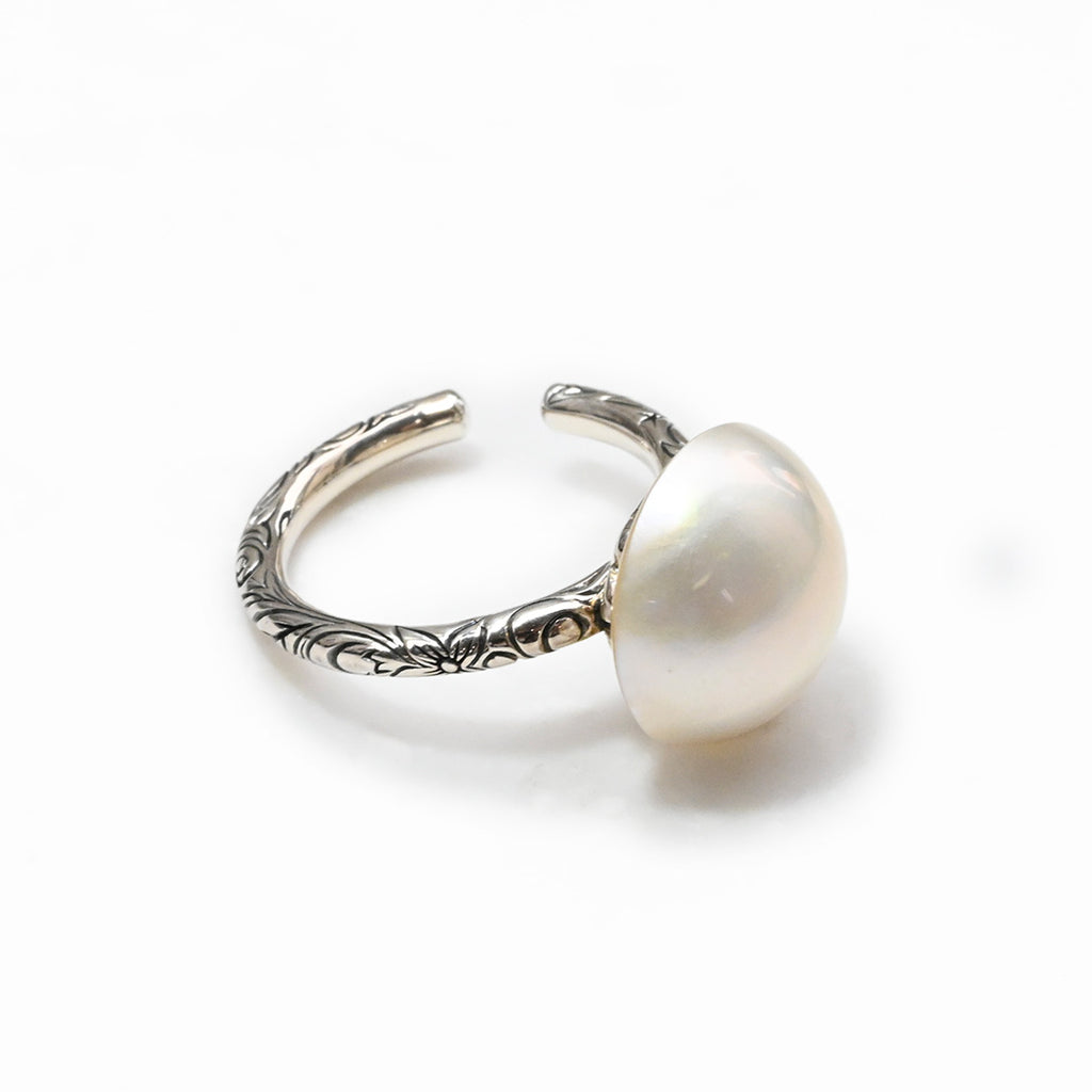 ■DETAIL〈素材〉シルバー925〈石〉マベパール〈モチーフサイズ〉直径約15mm※ブローチペンダント、ペンダントと表記がございますものは、真鍮サービスチェーンをお付けします。(リング、イヤリング、ピアス、K18、K10商品には付属しません。)■ご購入前にご確認ください※天然石を使用している為、色や形に多少の個体差があること、また、ブラウザによって実際の色味に若干差が出ますことをご了承ください。※撮影小物は付属いたしません。※商品の仕様変更、石変更は承っておりません。※ご注文後のお客様都合による返品・交換(サイズやイメージ違いなど)は承っておりません。不良品のみ返品を承ります。詳しくはこちら※着け心地や重さ等、その他ご不明な点はチャットにてお問い合わせくださいませ。