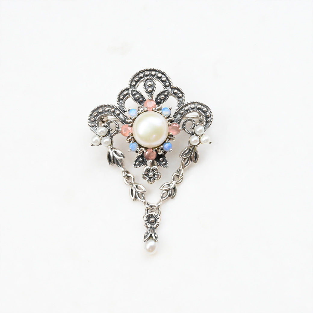 ■DETAIL〈素材〉シルバー925〈石〉インカローズ、オパール、淡水パール、シードパール〈モチーフサイズ〉最大縦約40mm×横約28mm※ブローチペンダント、ペンダントと表記がございますものは、真鍮サービスチェーンをお付けします。(リング、イヤリング、ピアス、K18、K10商品には付属しません。)■ご購入前にご確認ください※天然石を使用している為、色や形に多少の個体差があること、また、ブラウザによって実際の色味に若干差が出ますことをご了承ください。※撮影小物は付属いたしません。※商品の仕様変更、石変更は承っておりません。※ご注文後のお客様都合による返品・交換(サイズやイメージ違いなど)は承っておりません。不良品のみ返品を承ります。詳しくはこちら※着け心地や重さ等、その他ご不明な点はチャットにてお問い合わせくださいませ。