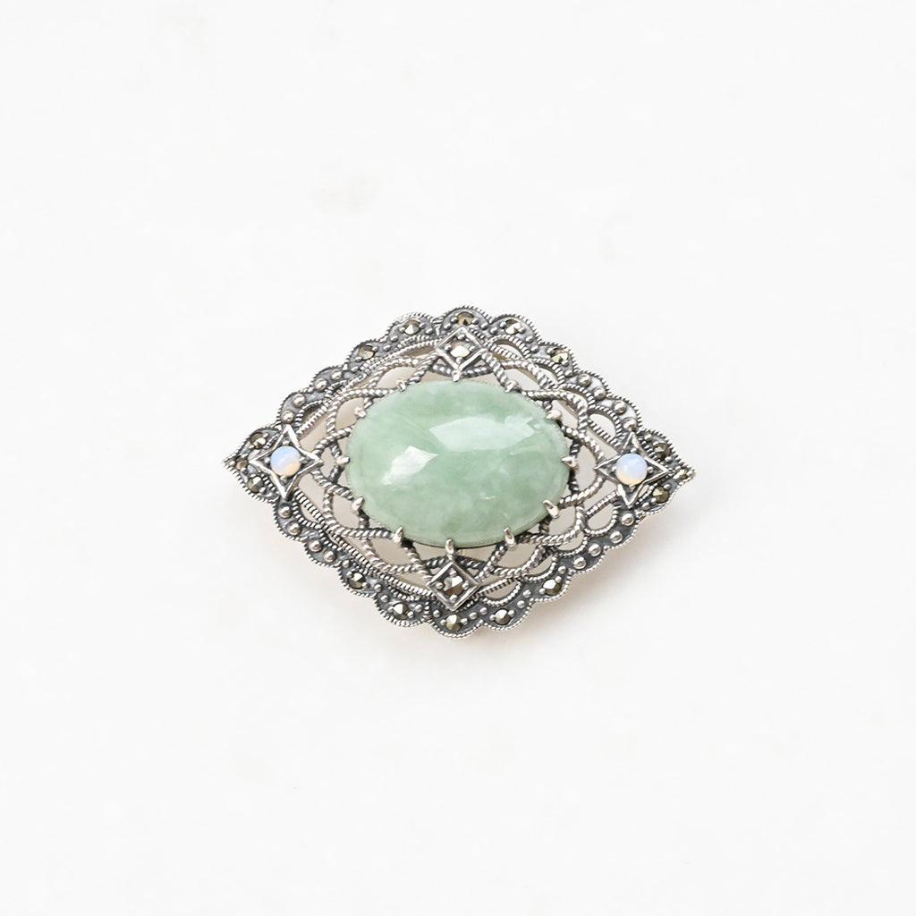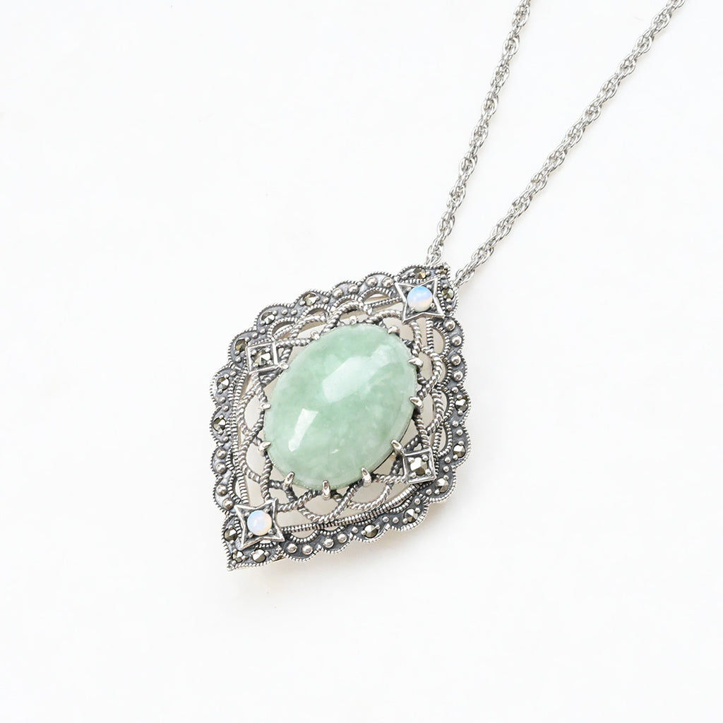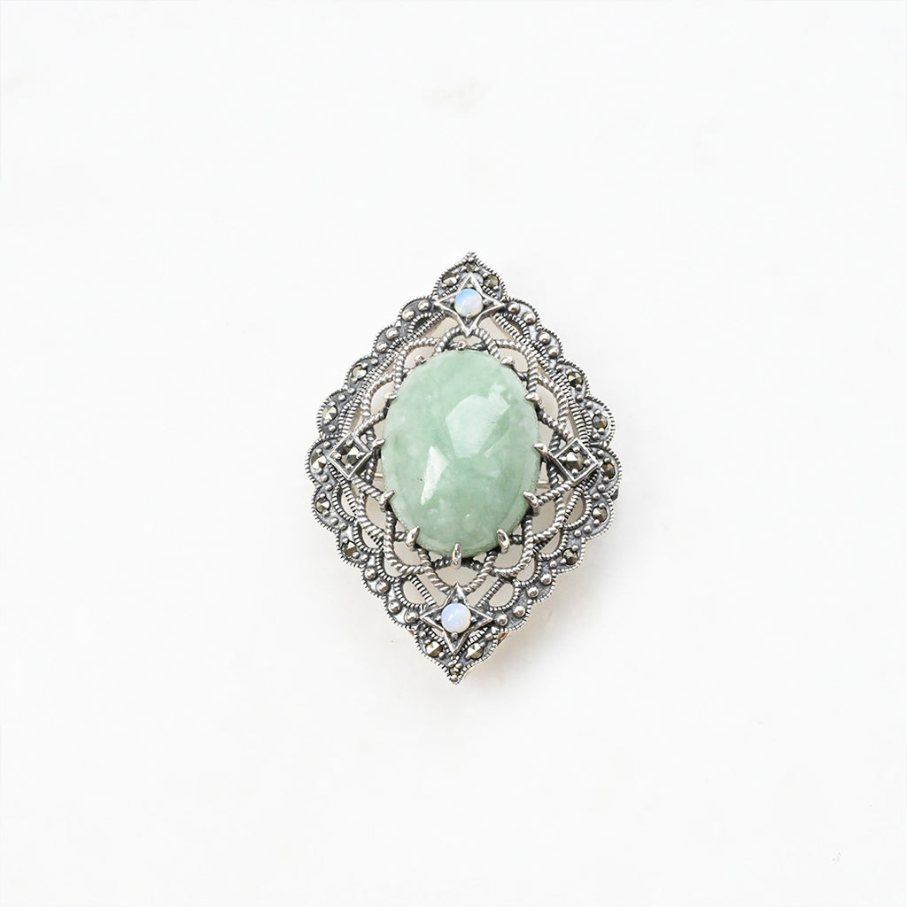 ■DETAIL〈素材〉シルバー925〈石〉ヒスイ、オパール、マルカジット〈モチーフサイズ〉最大縦約38mm×横約27mm※ブローチペンダント、ペンダントと表記がございますものは、真鍮サービスチェーンをお付けします。(リング、イヤリング、ピアス、K18、K10商品には付属しません。)■ご購入前にご確認ください※天然石を使用している為、色や形に多少の個体差があること、また、ブラウザによって実際の色味に若干差が出ますことをご了承ください。※撮影小物は付属いたしません。※商品の仕様変更、石変更は承っておりません。※ご注文後のお客様都合による返品・交換(サイズやイメージ違いなど)は承っておりません。不良品のみ返品を承ります。詳しくはこちら※着け心地や重さ等、その他ご不明な点はチャットにてお問い合わせくださいませ。