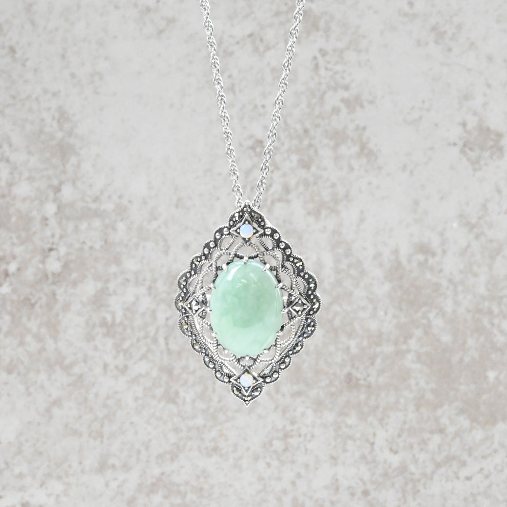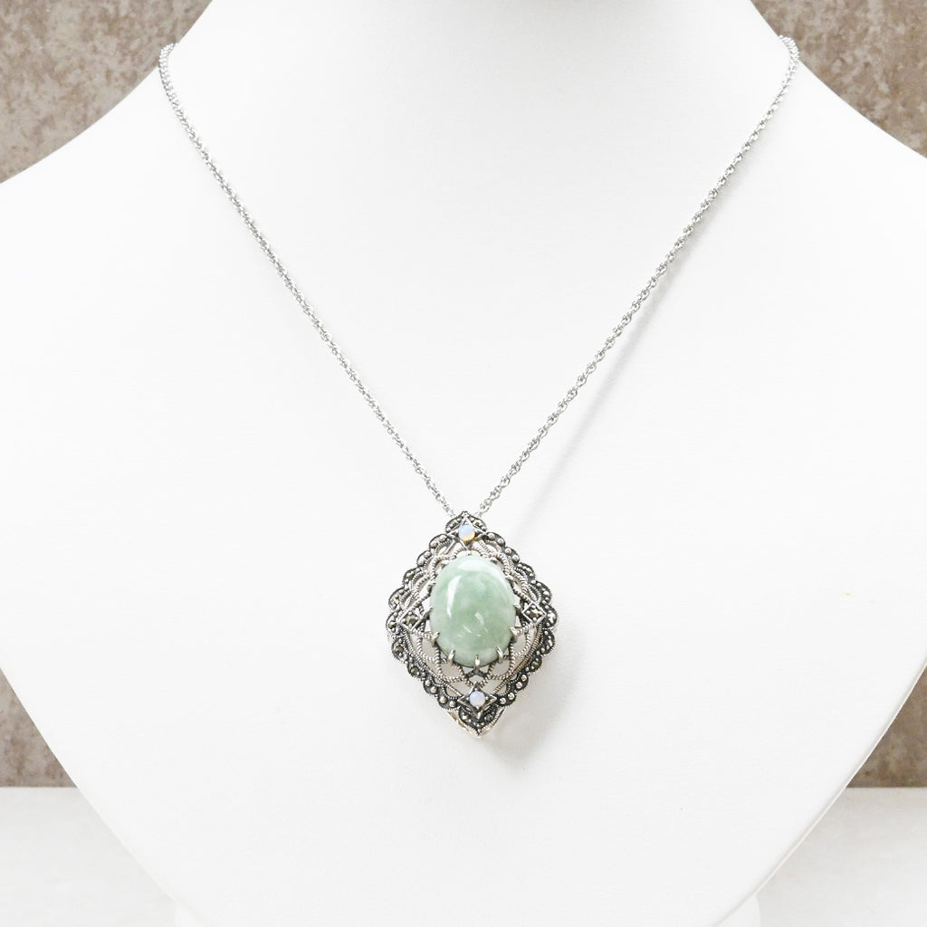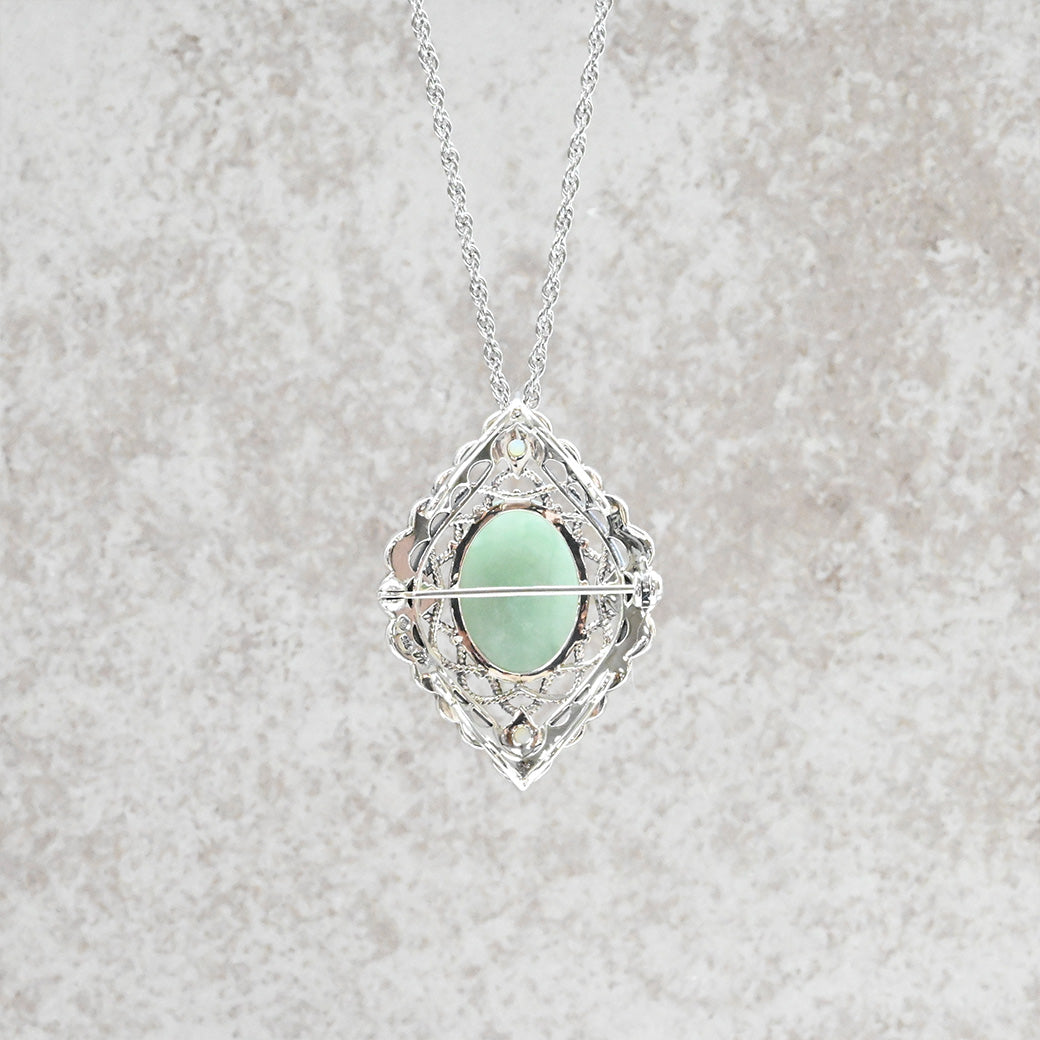 ■DETAIL〈素材〉シルバー925〈石〉ヒスイ、オパール、マルカジット〈モチーフサイズ〉最大縦約38mm×横約27mm※ブローチペンダント、ペンダントと表記がございますものは、真鍮サービスチェーンをお付けします。(リング、イヤリング、ピアス、K18、K10商品には付属しません。)■ご購入前にご確認ください※天然石を使用している為、色や形に多少の個体差があること、また、ブラウザによって実際の色味に若干差が出ますことをご了承ください。※撮影小物は付属いたしません。※商品の仕様変更、石変更は承っておりません。※ご注文後のお客様都合による返品・交換(サイズやイメージ違いなど)は承っておりません。不良品のみ返品を承ります。詳しくはこちら※着け心地や重さ等、その他ご不明な点はチャットにてお問い合わせくださいませ。