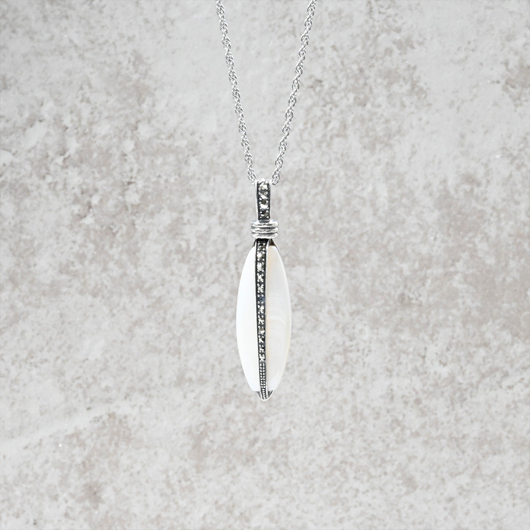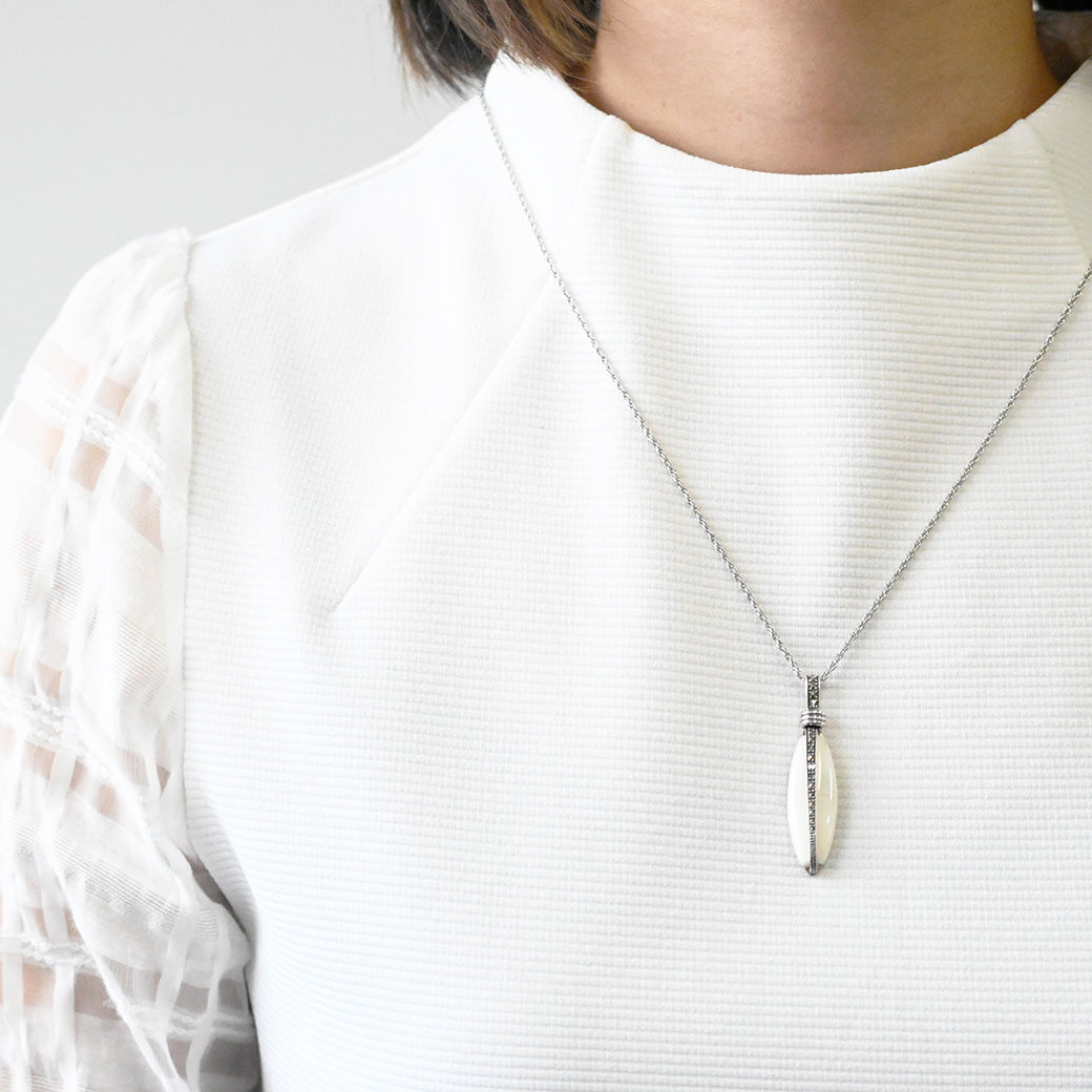 ■DETAIL〈素材〉シルバー925〈石〉白蝶貝、マルカジット〈モチーフサイズ〉最大縦約47mm×横約12mm(バチカン含む)※ブローチペンダント、ペンダントと表記がございますものは、真鍮サービスチェーンをお付けします。(リング、イヤリング、ピアス、K18、K10商品には付属しません。)■ご購入前にご確認ください※天然石を使用している為、色や形に多少の個体差があること、また、ブラウザによって実際の色味に若干差が出ますことをご了承ください。※撮影小物は付属いたしません。※商品の仕様変更、石変更は承っておりません。※ご注文後のお客様都合による返品・交換(サイズやイメージ違いなど)は承っておりません。不良品のみ返品を承ります。詳しくはこちら※着け心地や重さ等、その他ご不明な点はチャットにてお問い合わせくださいませ。