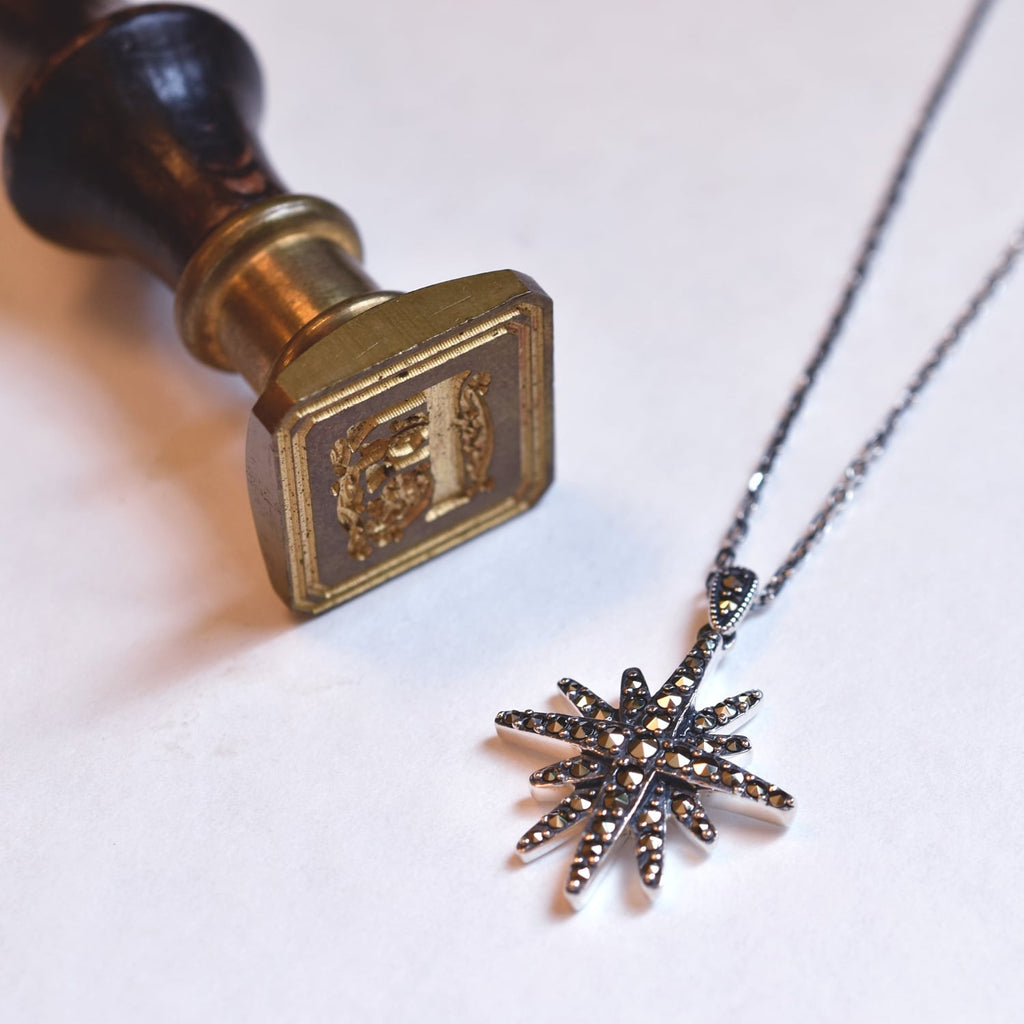 SV ラピスラズリ&マルカジット 木の葉と星花のペンダント