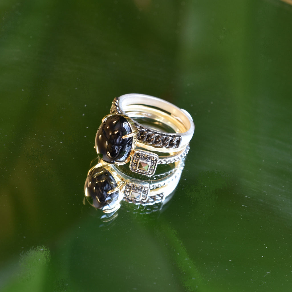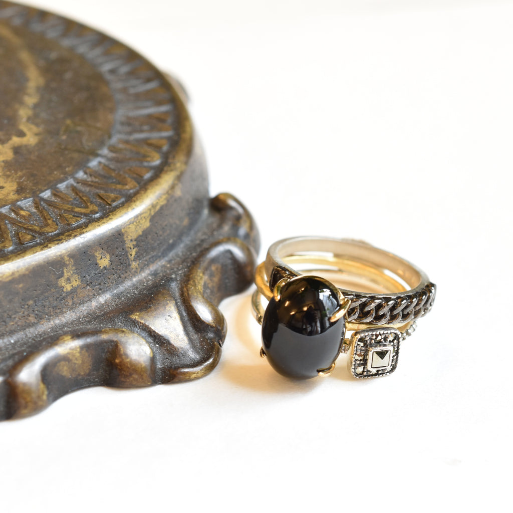 SV ホワイトトパーズ&ブラックスピネル モノトーンフラワーリング