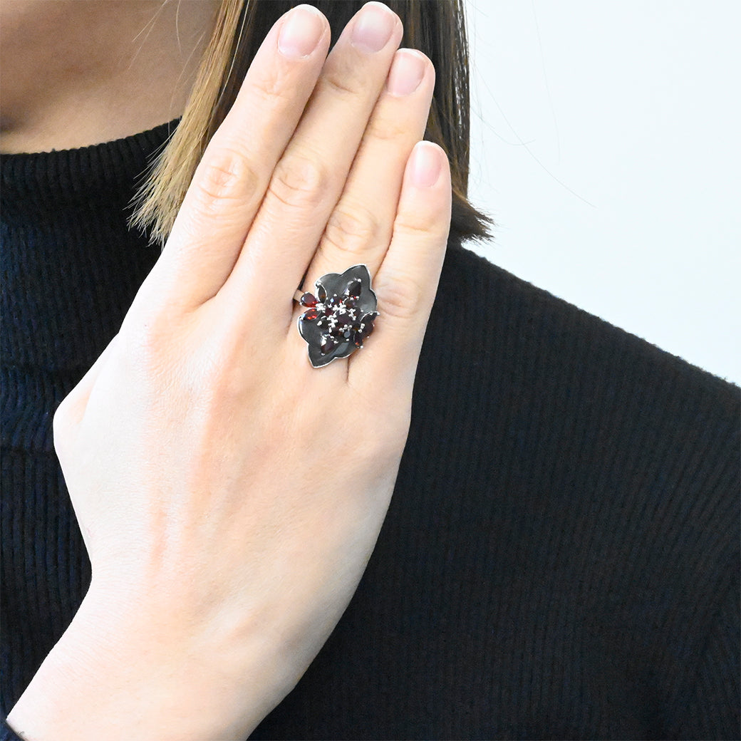 【1点もの】SV ガーネット 黒蝶貝 ノクターンリング