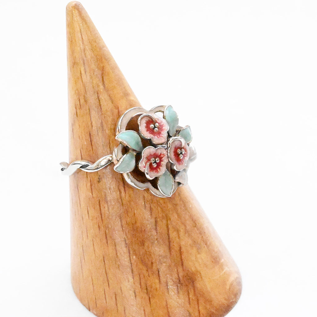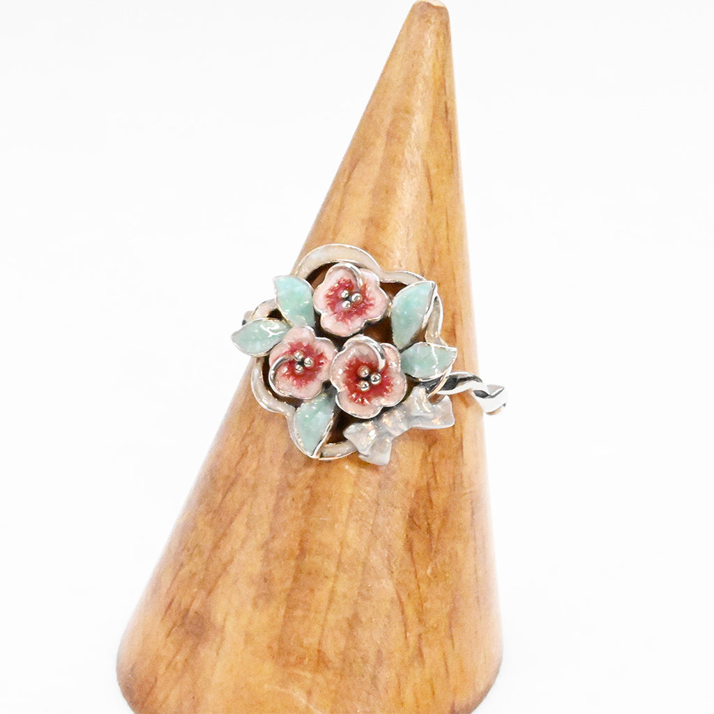 SV 花飾りのエナメルリング - 9号 【現在こちらの商品はオーダー品もしくは入荷待ち商品となっております。お届けまで最大1ヶ月半程度のお日にちをいただきます。※入荷状況により前後の可能性有り】