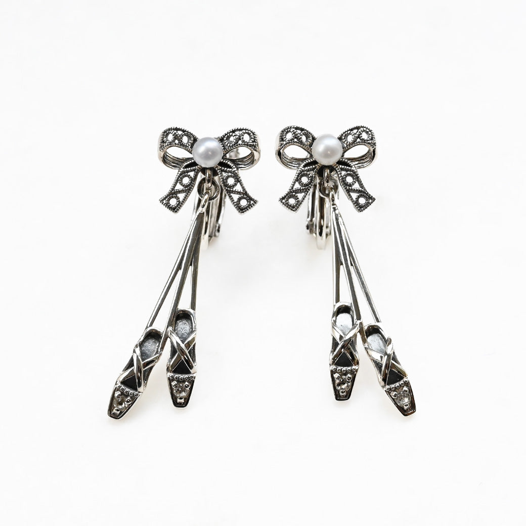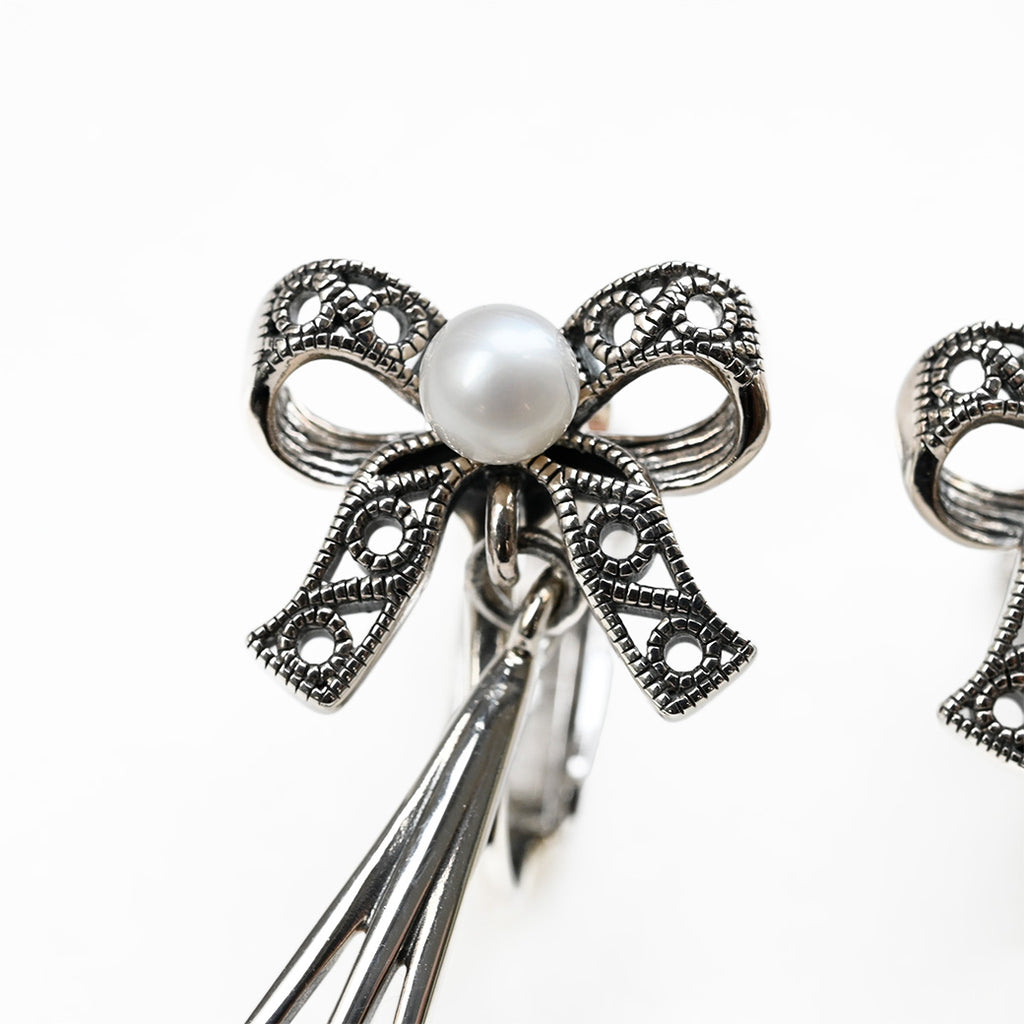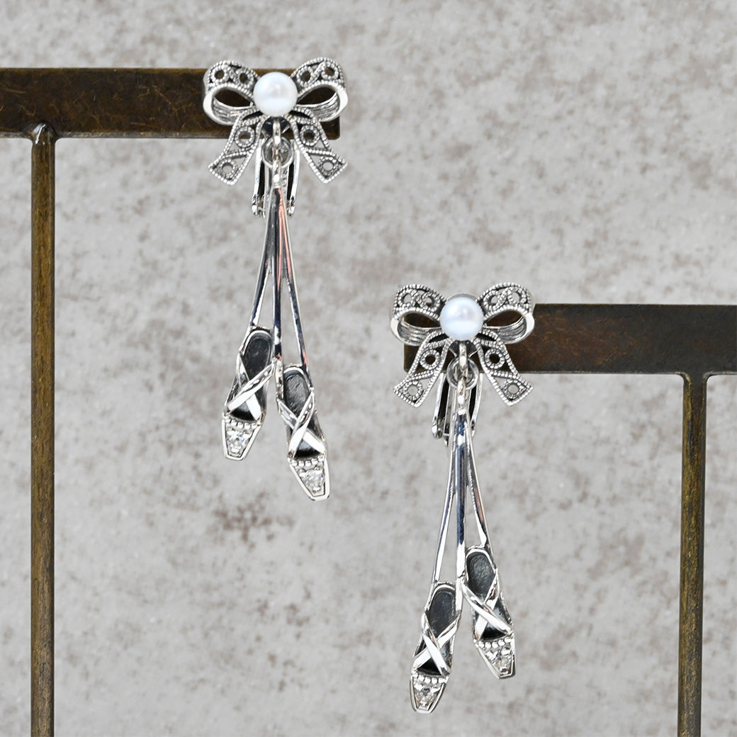 SV パール 夢みる踊り子のリボン&トゥシューズ イヤリング/ピアス - イヤリング 【現在こちらの商品はオーダー品もしくは入荷待ち商品となっております。お届けまで最大1ヶ月半程度のお日にちをいただきます。※入荷状況により前後の可能性有り】