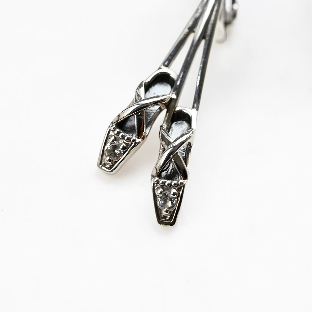 ドガの踊り子をイメージした、優雅なイヤリングです。繊細なトゥシューズを結ぶリボンがそっと揺れ、耳元に上品な華やかさを添えてくれます。