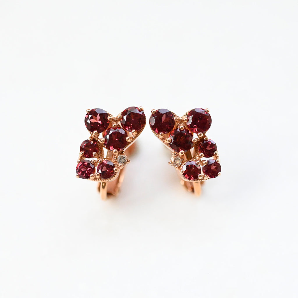 ■DETAIL〈素材〉シルバー925+ピンクゴールドメッキ〈石〉ローズガーネット、ホワイトトパーズ〈モチーフサイズ〉最大縦約15mm×横約10mm〈イヤリングタイプ〉バネ式※ブローチペンダント、ペンダントと表記がございますものは、真鍮サービスチェーンをお付けします。(リング、イヤリング、ピアス、K18、K10商品には付属しません。)■ご購入前にご確認ください※天然石を使用している為、色や形に多少の個体差があること、また、ブラウザによって実際の色味に若干差が出ますことをご了承ください。※撮影小物は付属いたしません。※商品の仕様変更、石変更は承っておりません。※ご注文後のお客様都合による返品・交換(サイズやイメージ違いなど)は承っておりません。不良品のみ返品を承ります。詳しくはこちら※着け心地や重さ等、その他ご不明な点はチャットにてお問い合わせくださいませ。