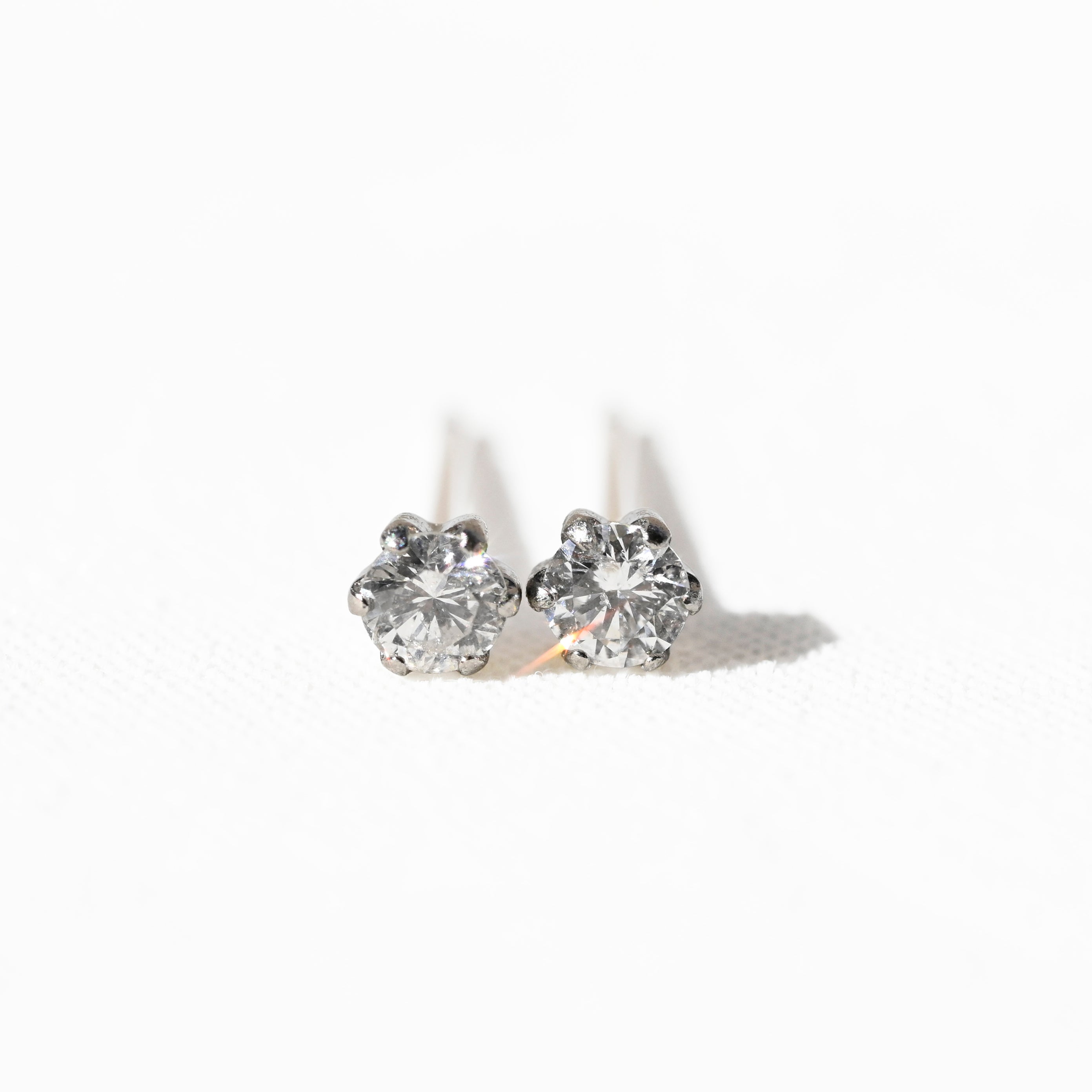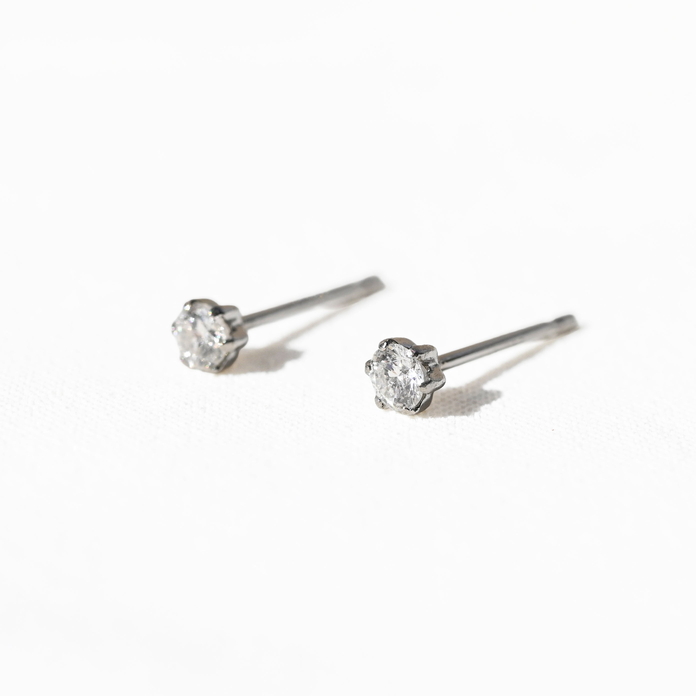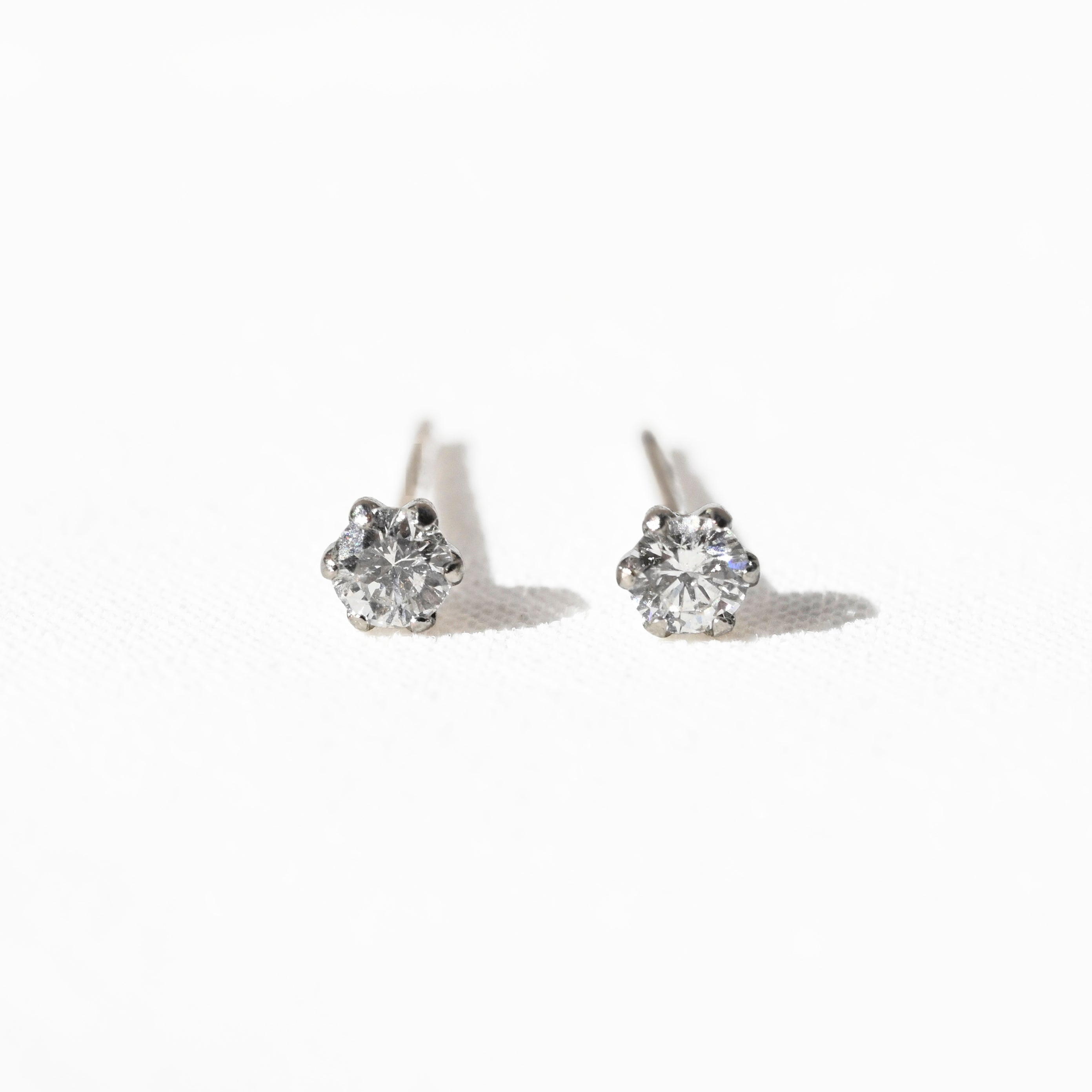 シンプルで上品な一粒ダイヤモンドのスタッドピアス。ダイヤモンドの美しさを引き立てるすっきりとした爪留めで、どの角度から見ても輝きを感じられる仕上がりです。