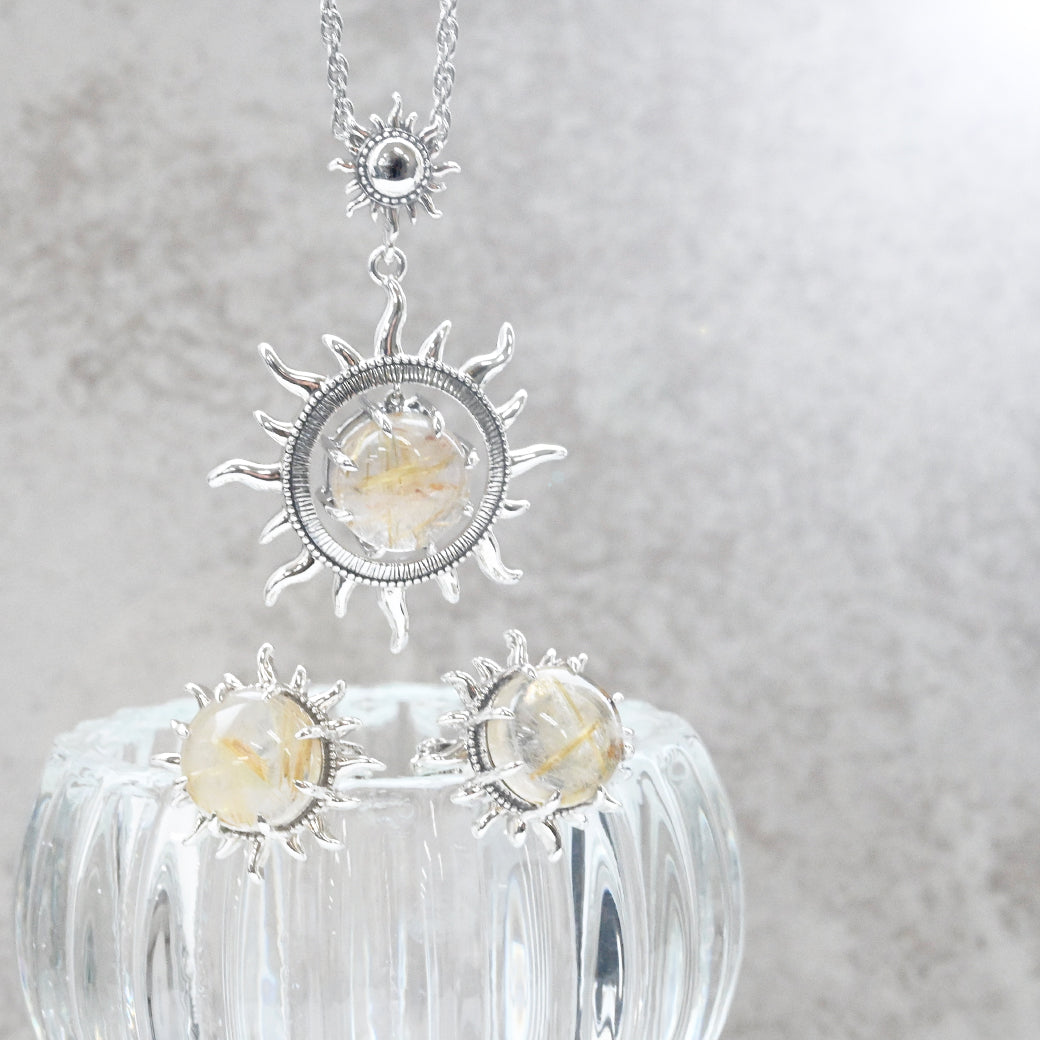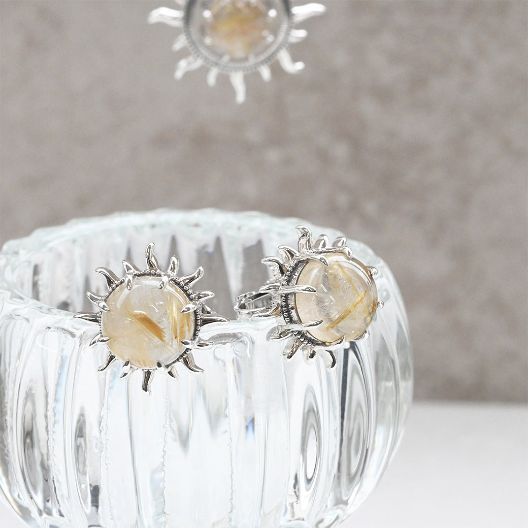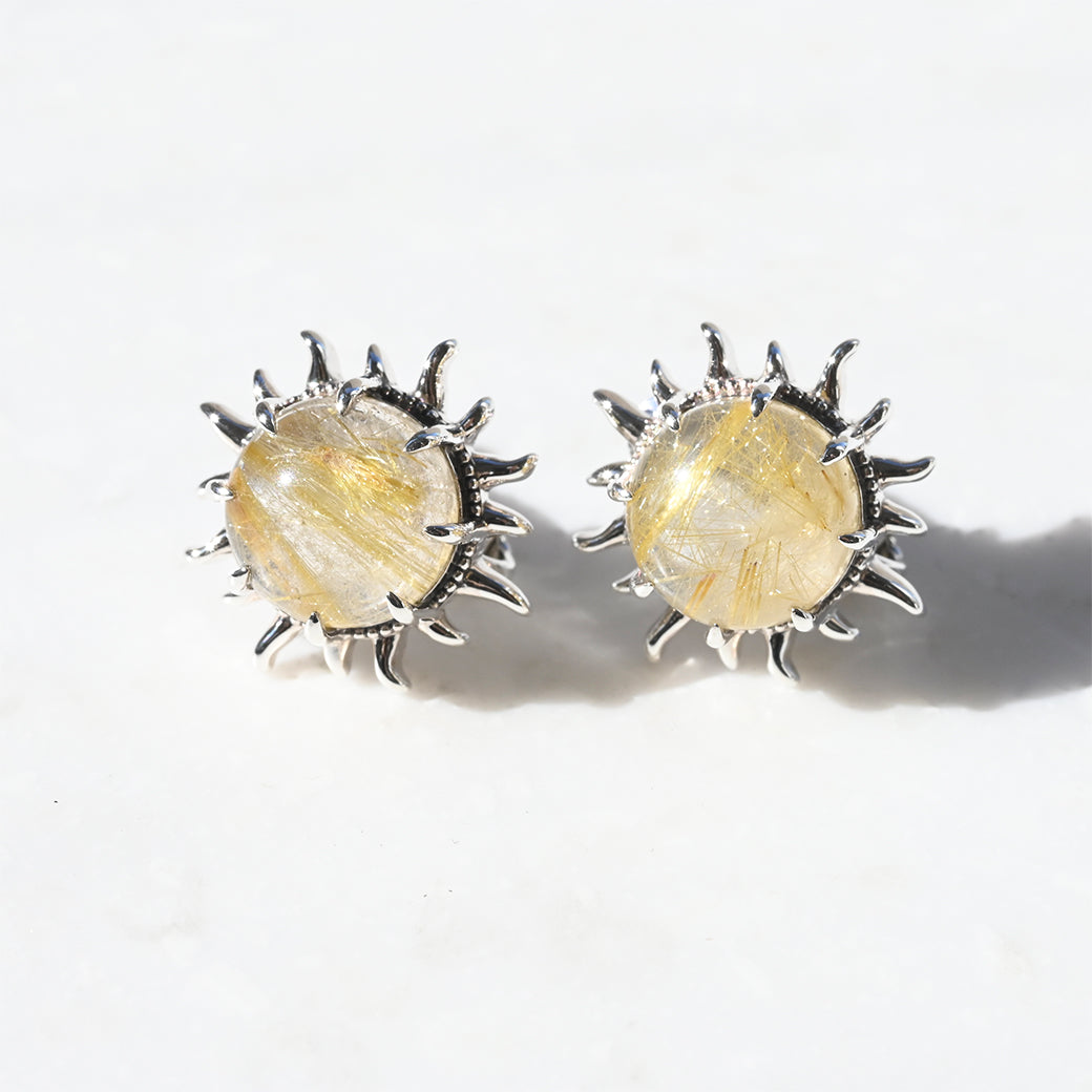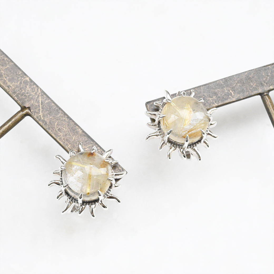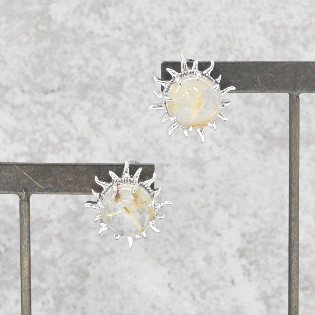 SV ルチルクォーツ 太陽のイヤリング/ピアス - イヤリング 【現在こちらの商品はオーダー品もしくは入荷待ち商品となっております。お届けまで最大1ヶ月半程度のお日にちをいただきます。※入荷状況により前後の可能性有り】