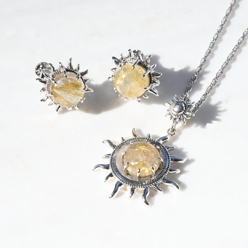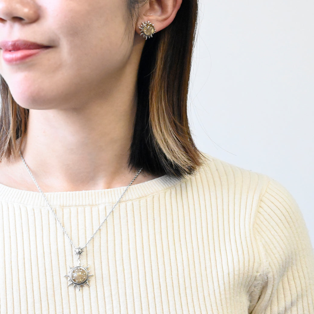 繊細なシルバー細工と温かみのある天然石が織りなす太陽モチーフのジュエリー。