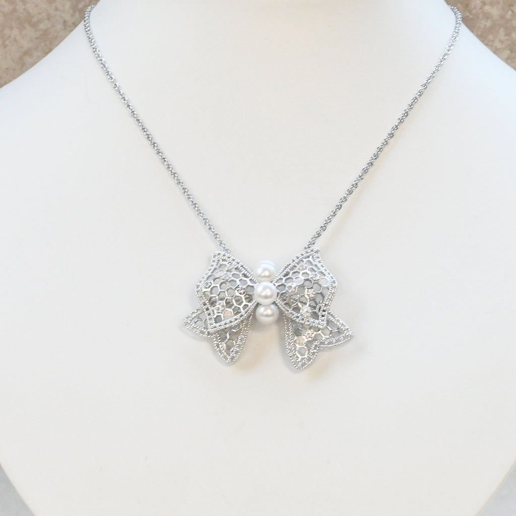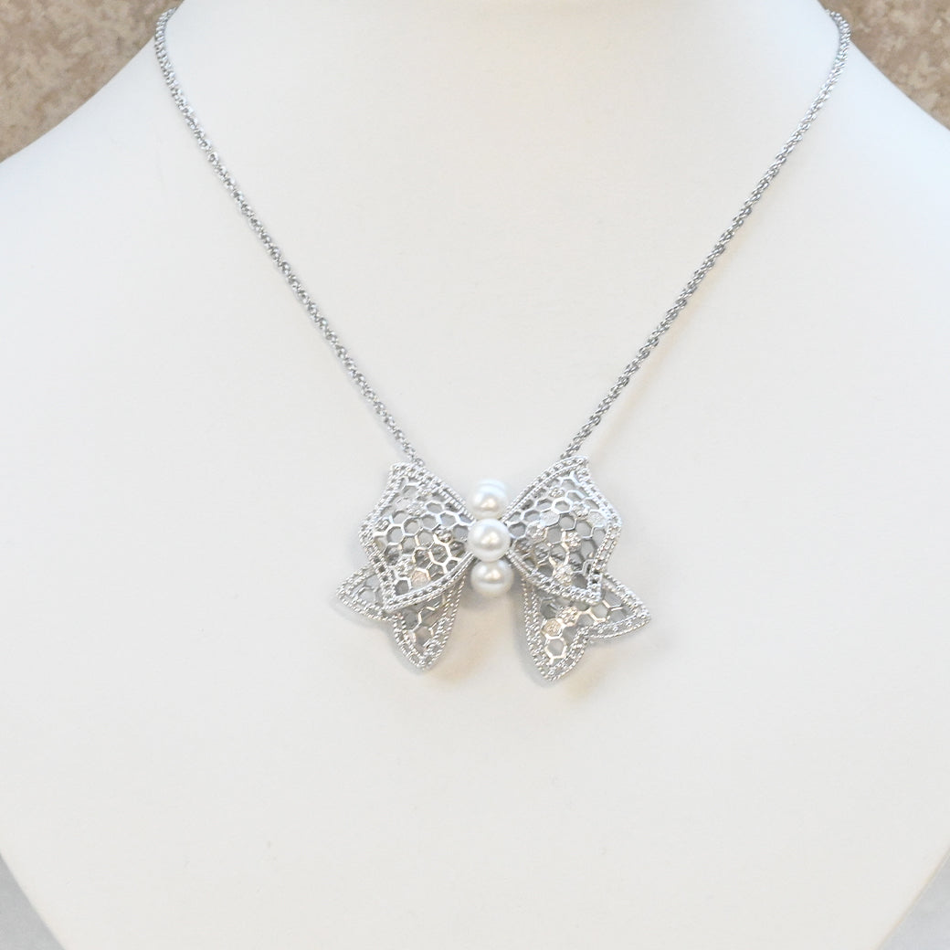 〈素材〉シルバー925(ロジウムメッキ)〈石〉淡水パール、ホワイトトパーズ〈モチーフサイズ〉最大縦約35mm×横約46mm