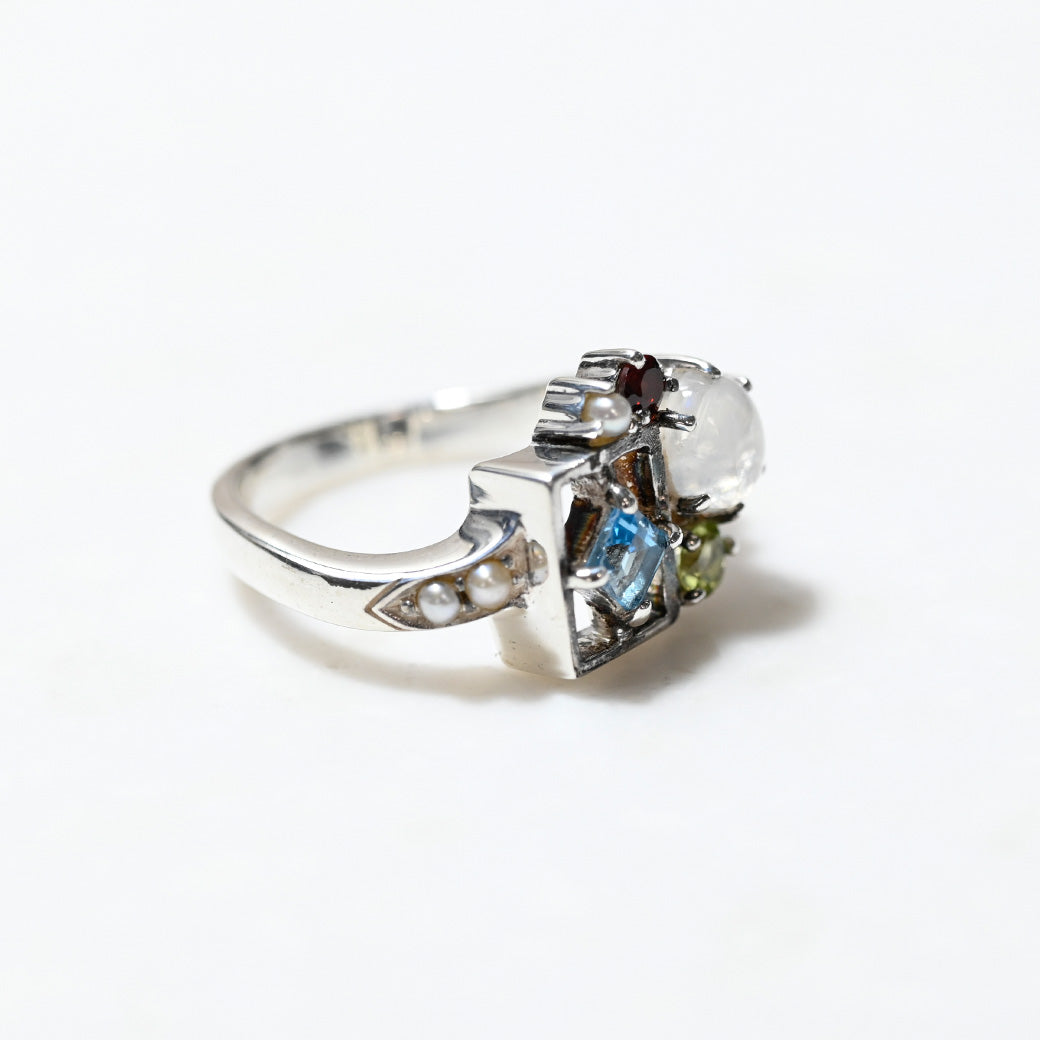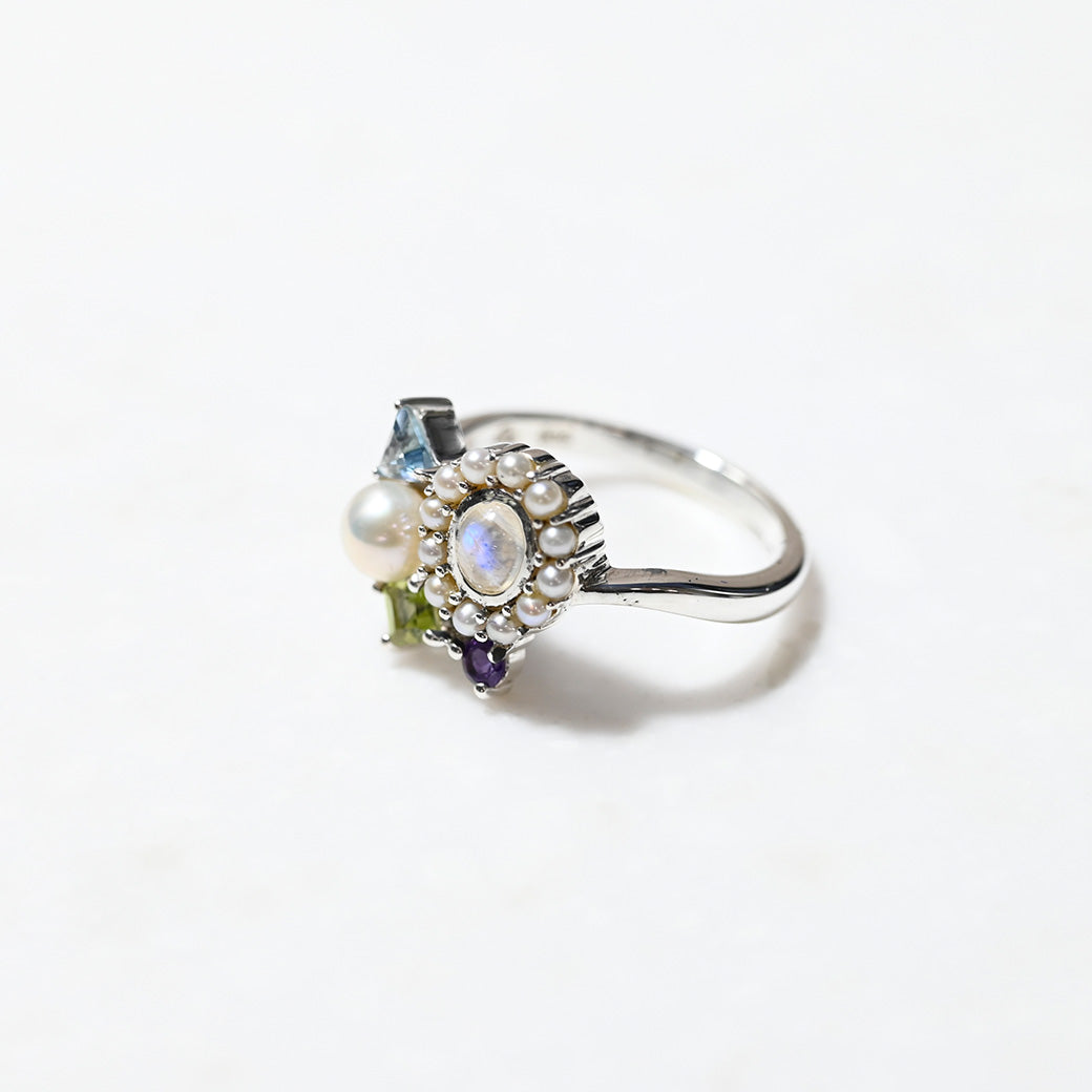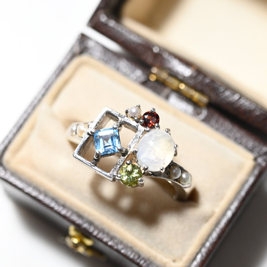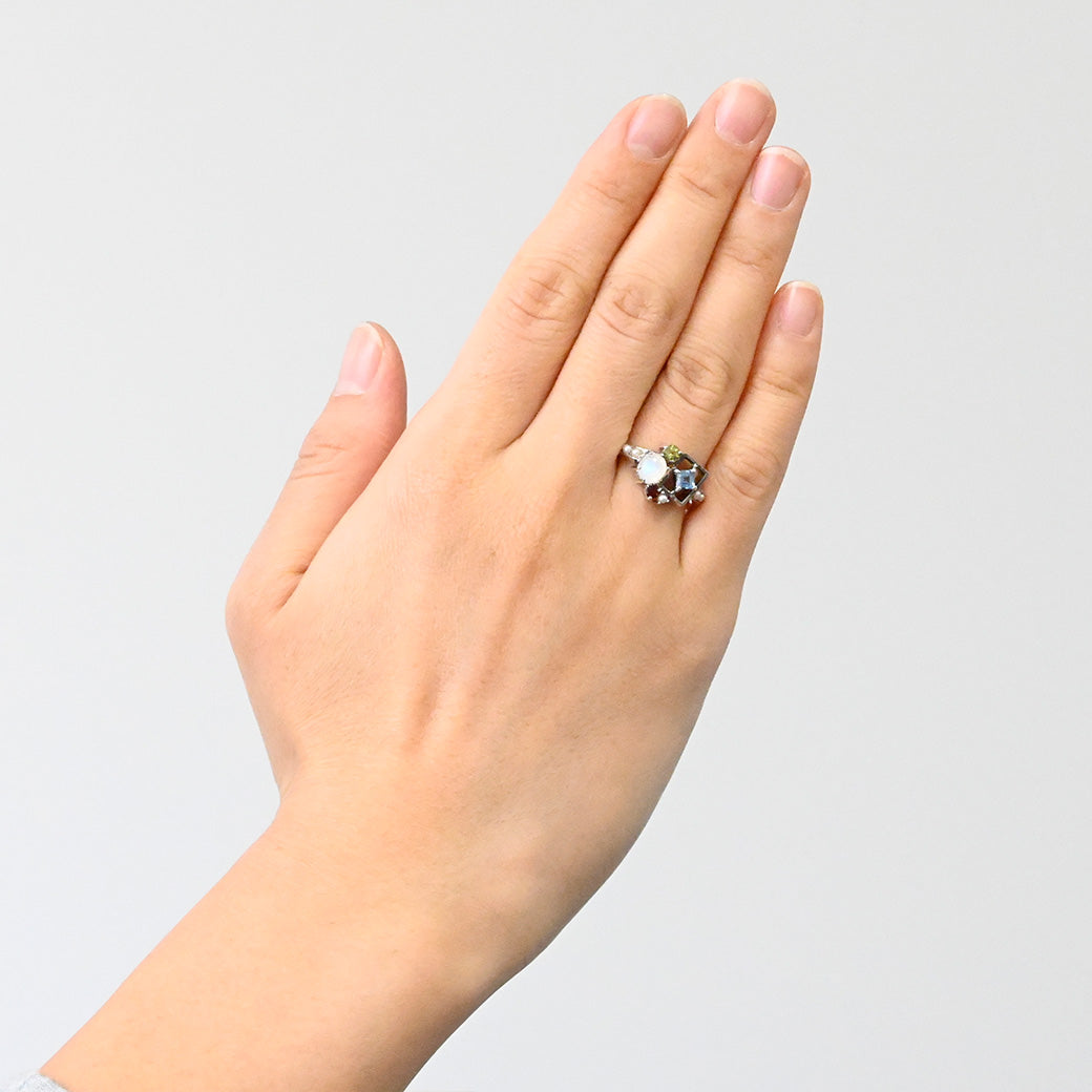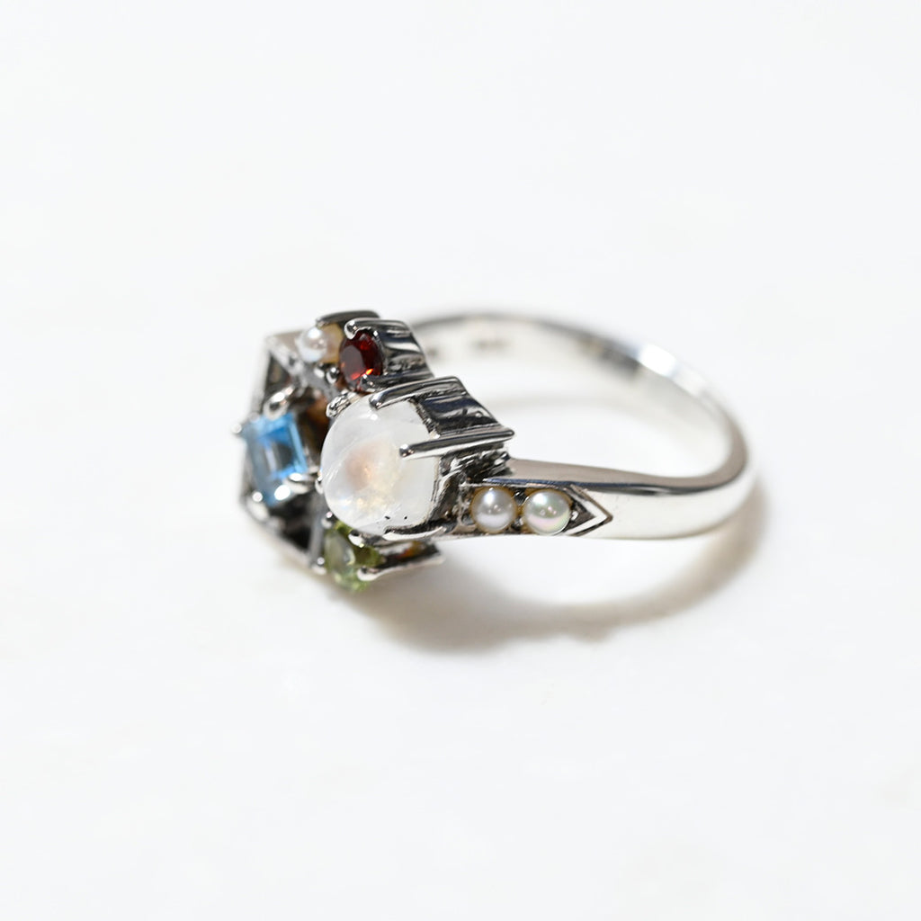 ■DETAIL〈素材〉シルバー925〈石〉ガーネット、ペリドット、シードパール、レインボームーンストーン、スイスブルートパーズ〈モチーフサイズ〉最大縦約12mm×横約13mm※ブローチペンダント、ペンダントと表記がございますものは、真鍮サービスチェーンをお付けします。(リング、イヤリング、ピアス、K18、K10商品には付属しません。)■ご購入前にご確認ください※天然石を使用している為、色や形に多少の個体差があること、また、ブラウザによって実際の色味に若干差が出ますことをご了承ください。※撮影小物は付属いたしません。※商品の仕様変更、石変更は承っておりません。※ご注文後のお客様都合による返品・交換(サイズやイメージ違いなど)は承っておりません。不良品のみ返品を承ります。詳しくはこちら※着け心地や重さ等、その他ご不明な点はチャットにてお問い合わせくださいませ。