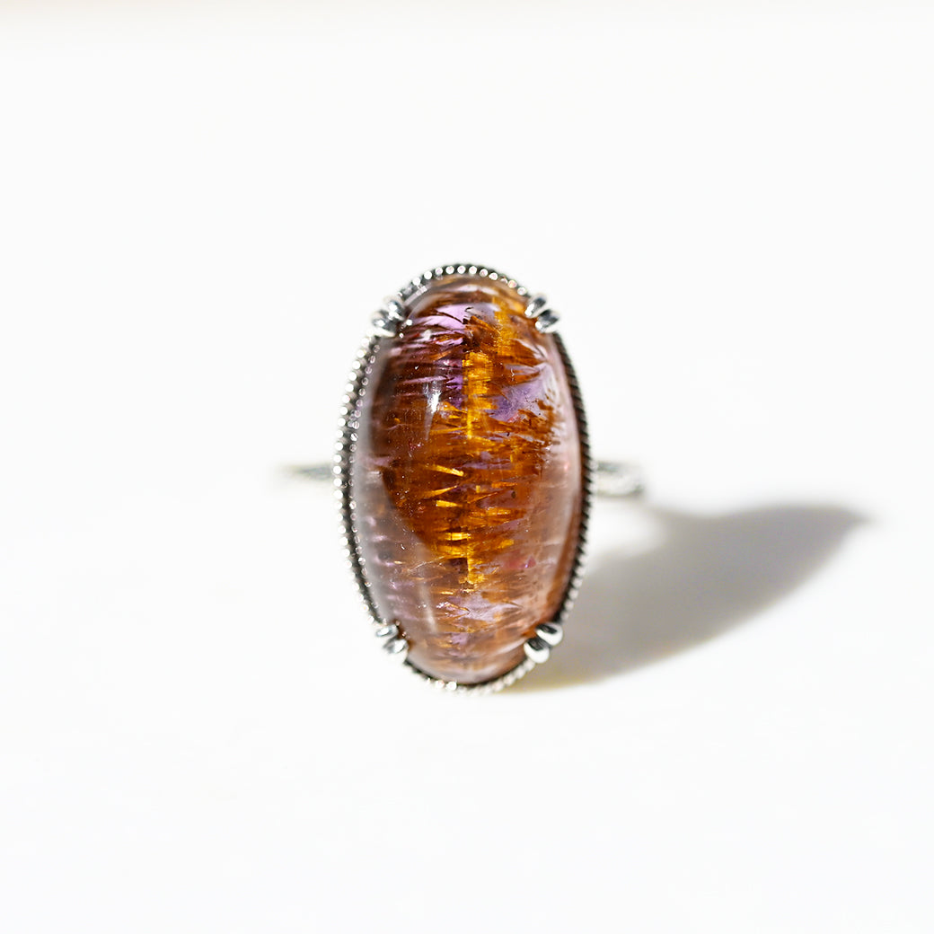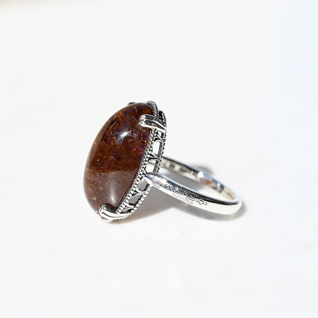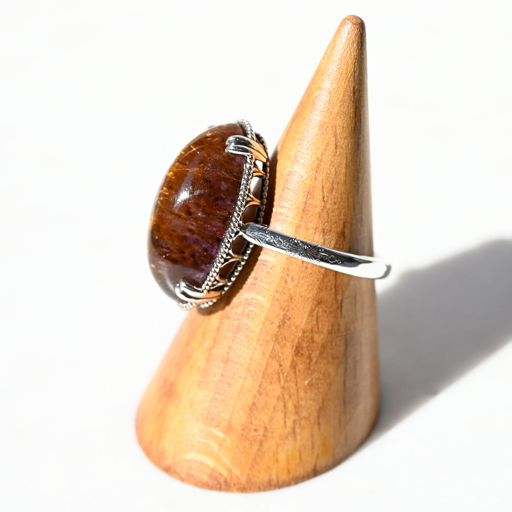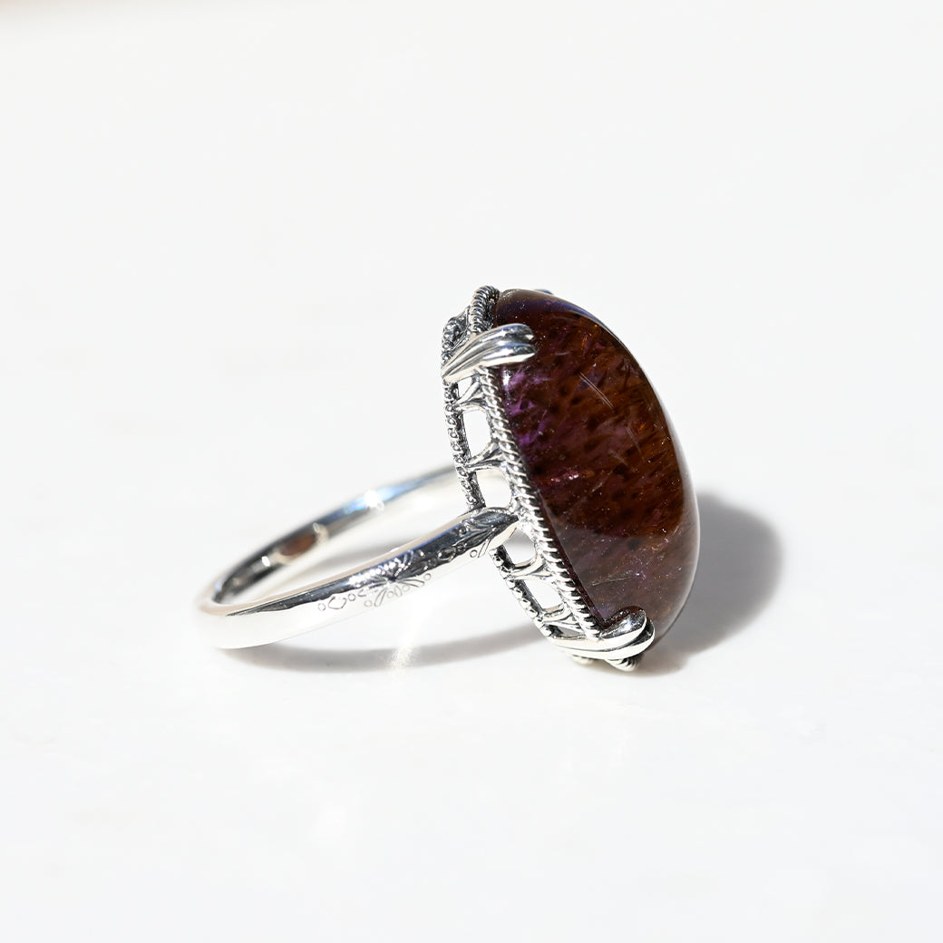繊細なインクルージョンを内包したアメジストルチルを主役にした、SV(Silver 925)製のリングです。