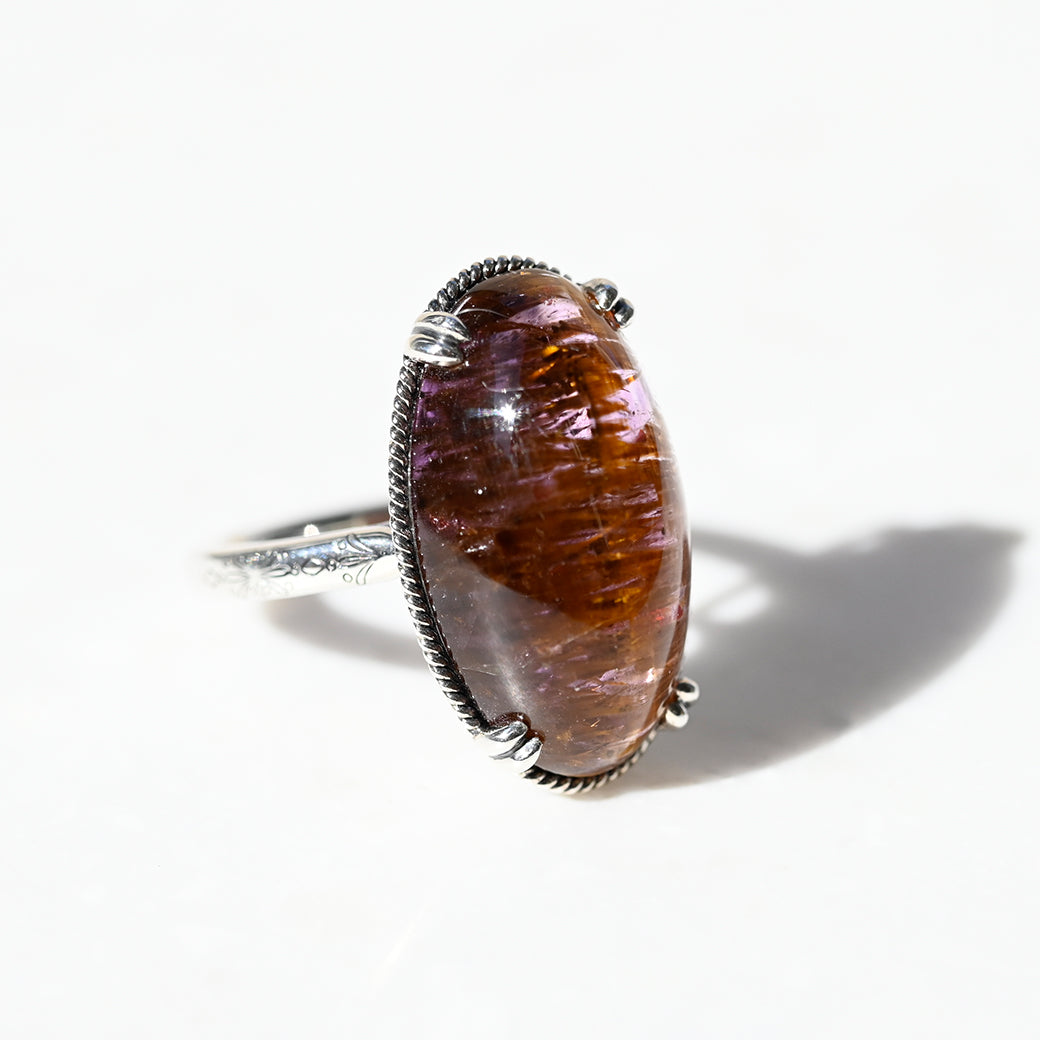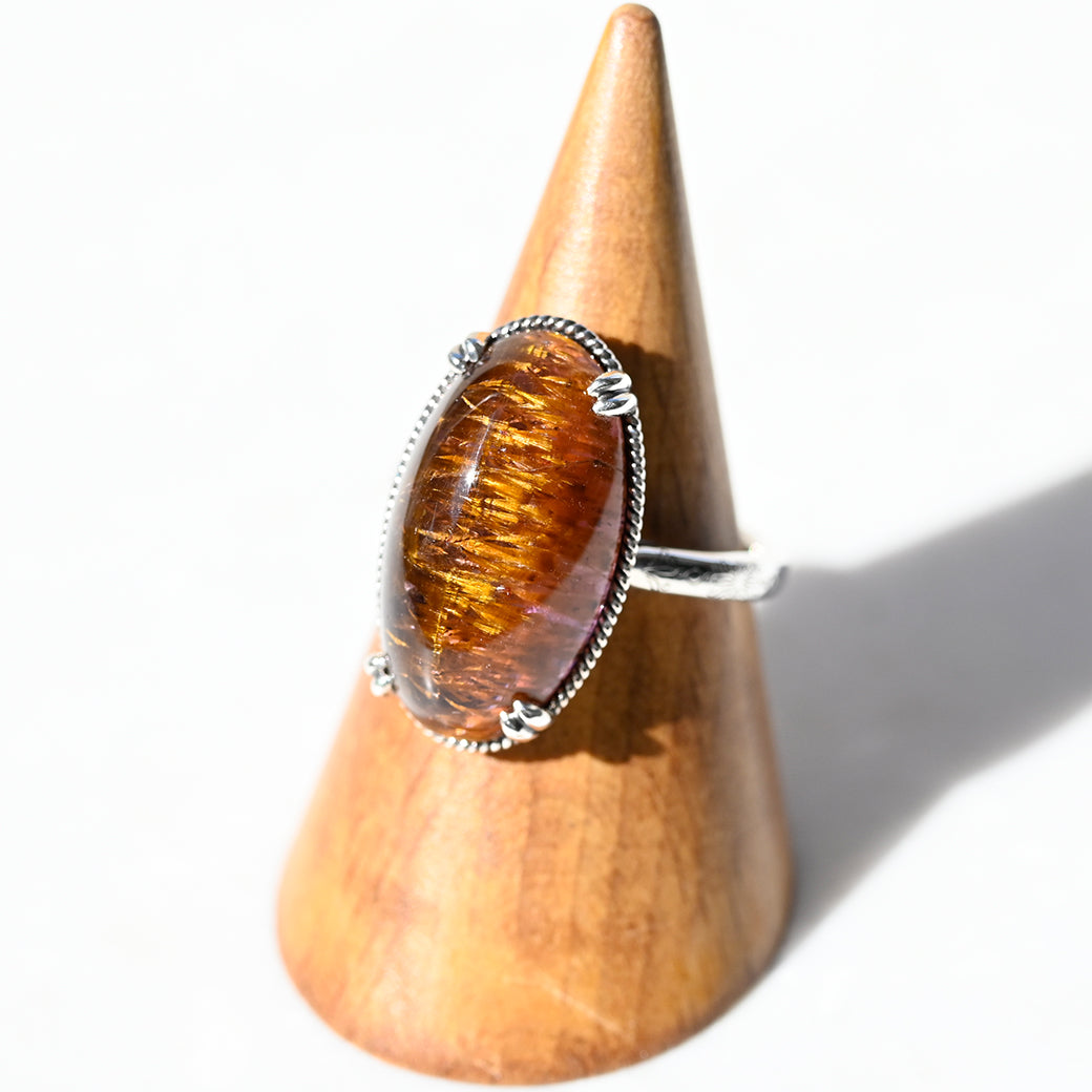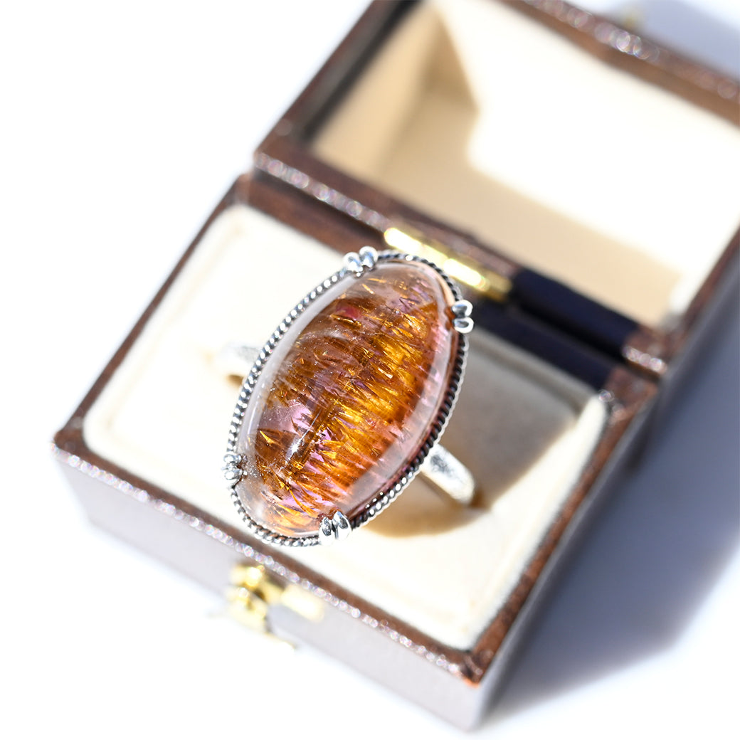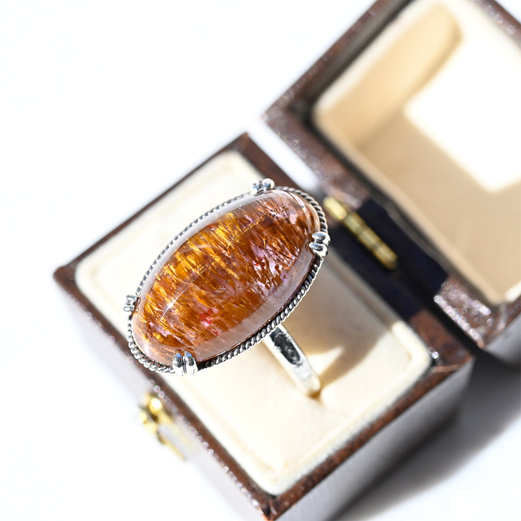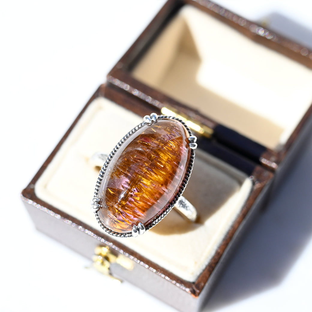 繊細なインクルージョンを内包したアメジストルチルを主役にした、SV(Silver 925)製のリングです。