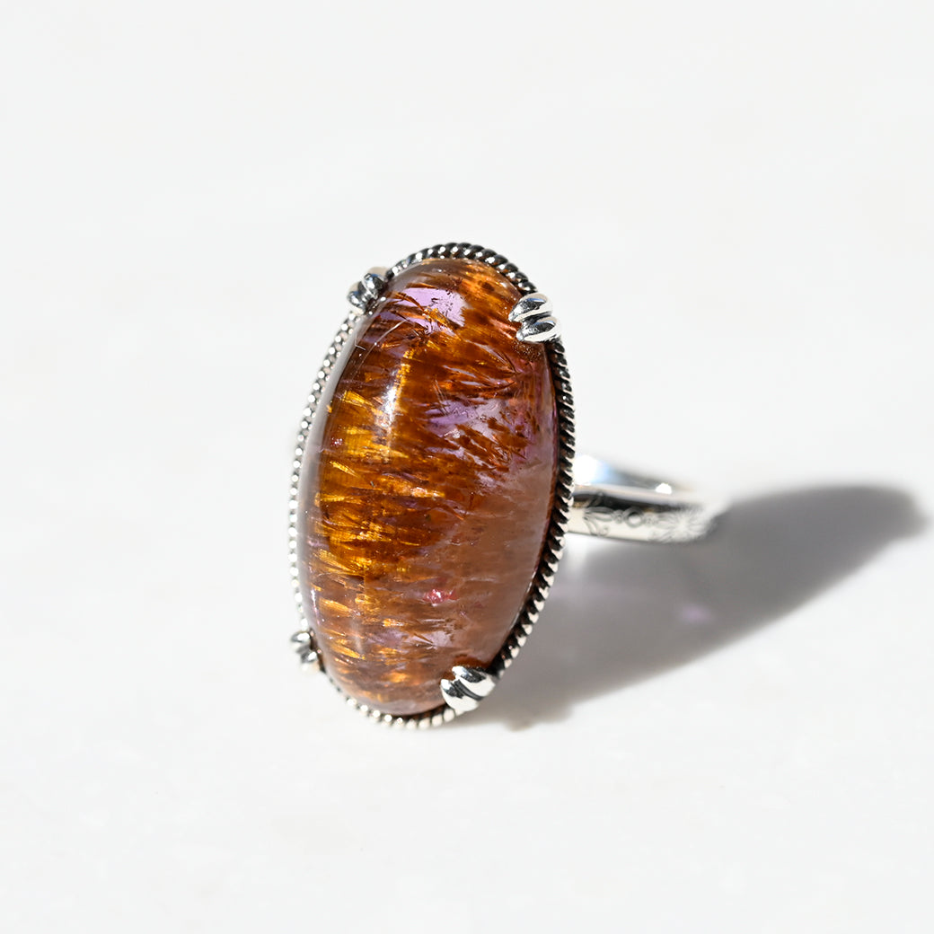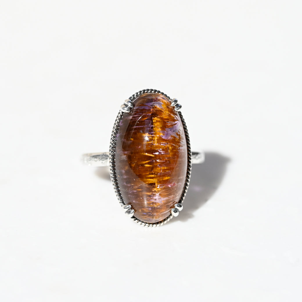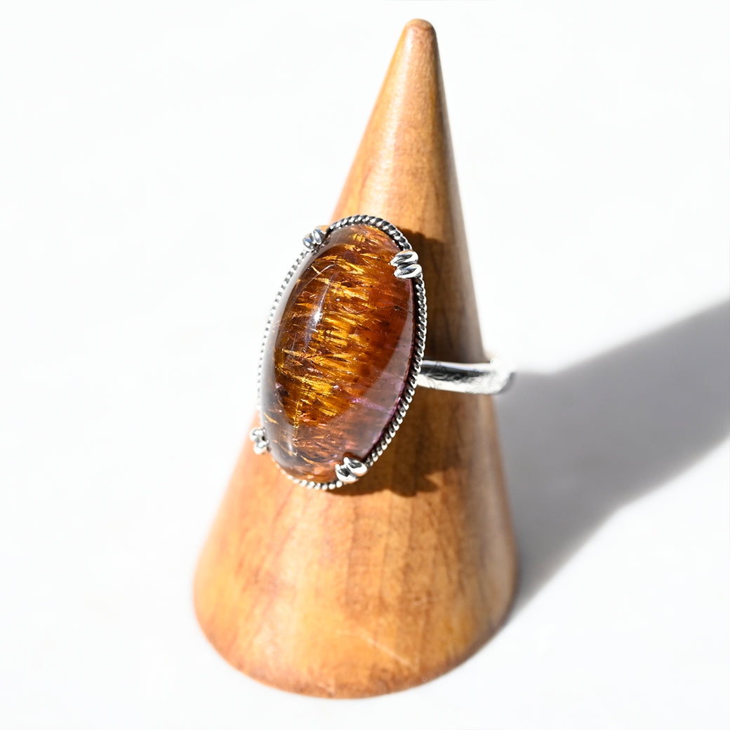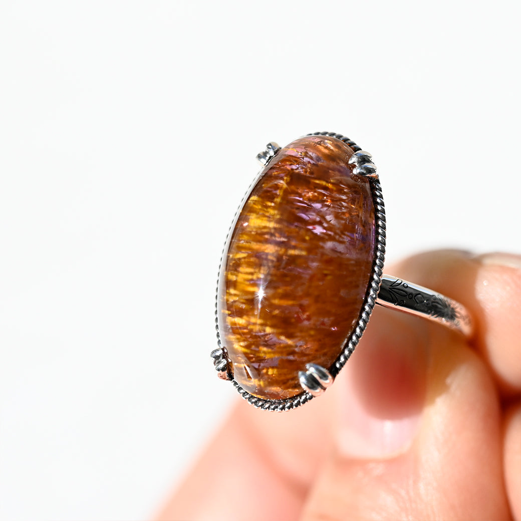 繊細なインクルージョンを内包したアメジストルチルを主役にした、SV(Silver 925)製のリングです。